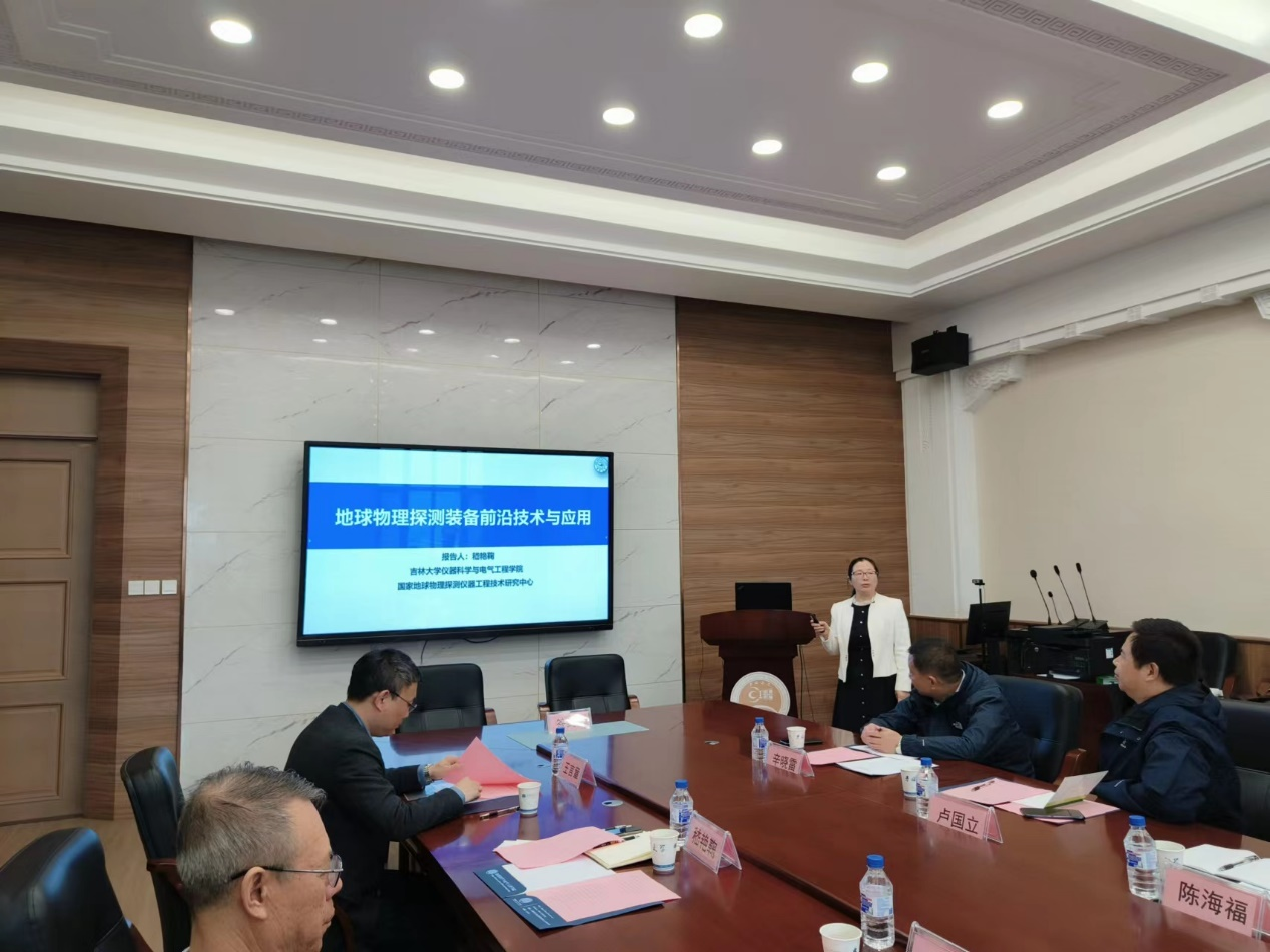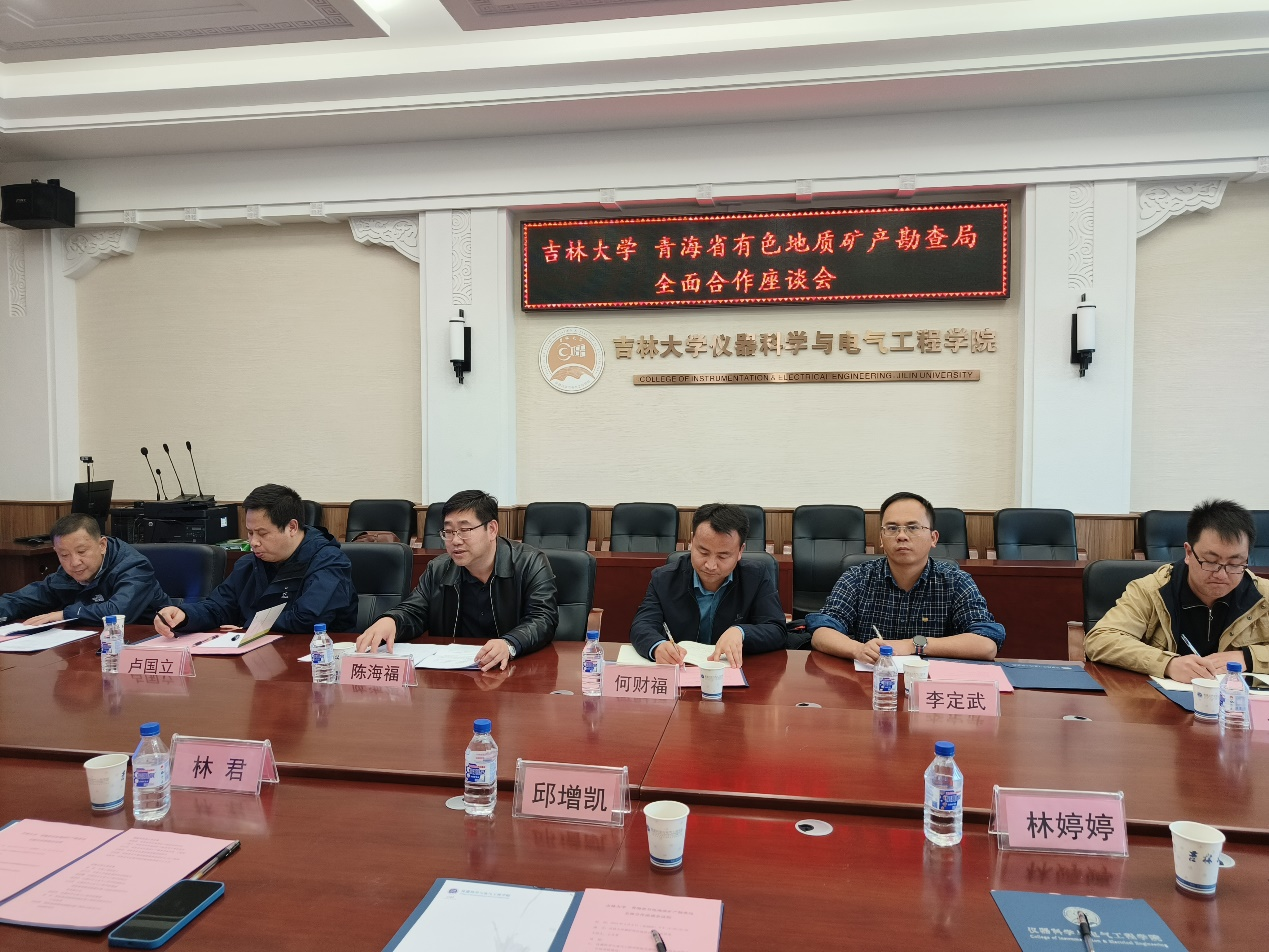 On April 6th, Chen Haifu, deputy director of the Bureau of Non-ferrous Geology and Mineral Exploration of Qinghai Province, came to the National Geophysical Exploration Equipment Engineering Technology Research Center of Jilin University, and the two sides had a discussion and exchange on deepening cooperation, with academician Lin Jun, Minister of Geology Department of Jilin University, attending the symposium, Secretary Qiu Zengkai, Dean JI Yanju and Professor Duan Qingming of CIEE attending the meeting, and the meeting was chaired by Prof. Wang Yanzhang, Executive Deputy Director of the Center.