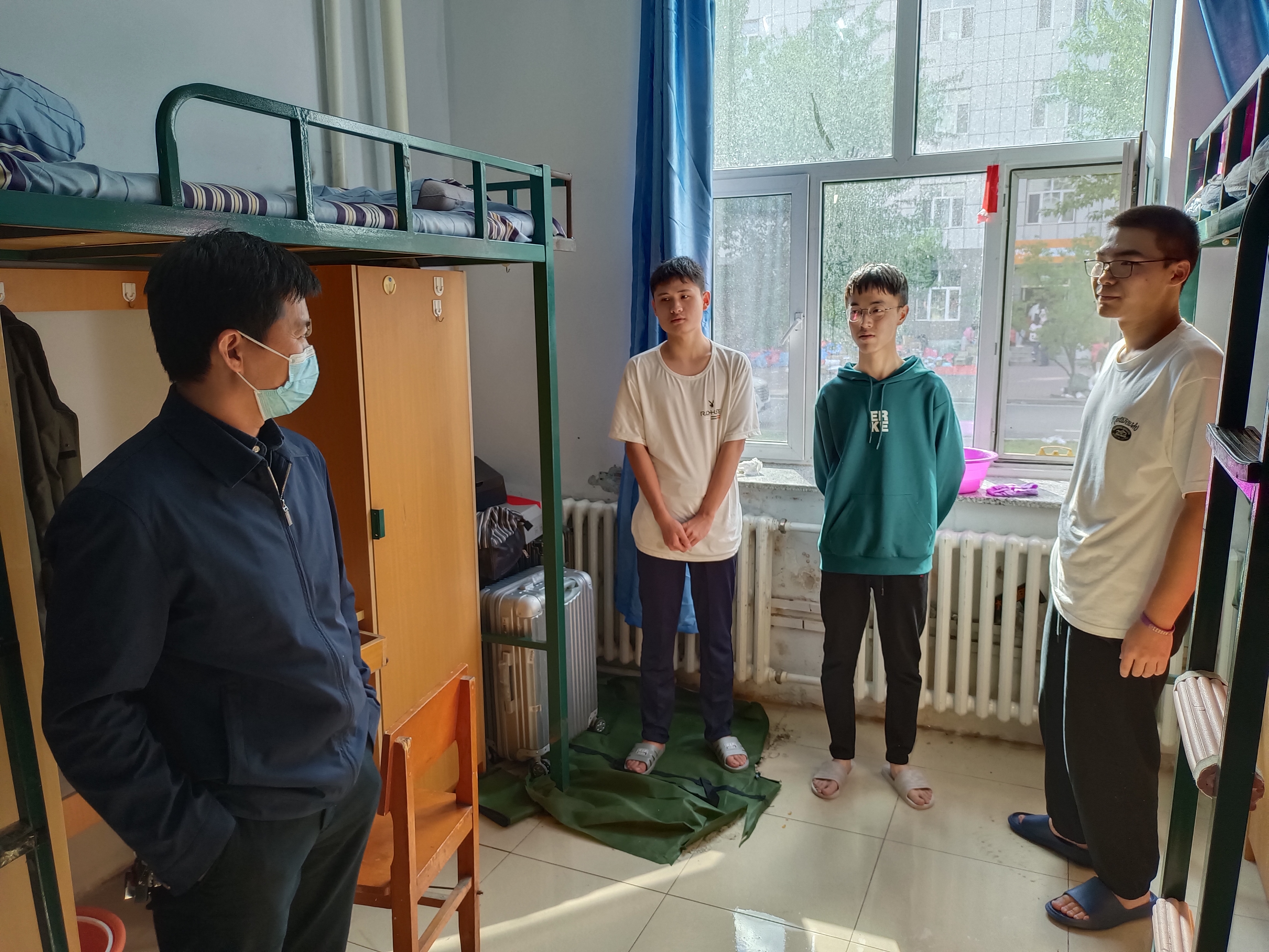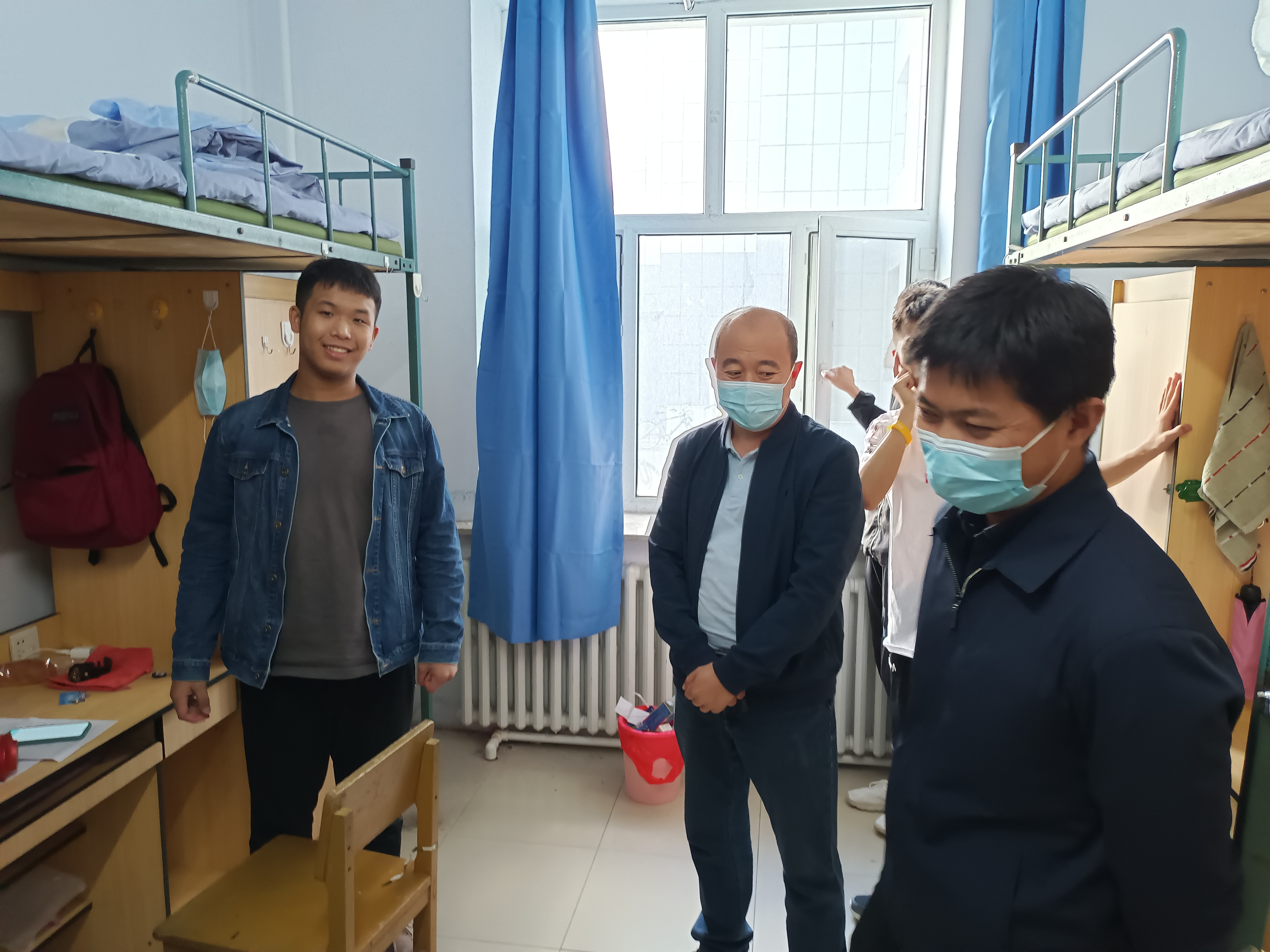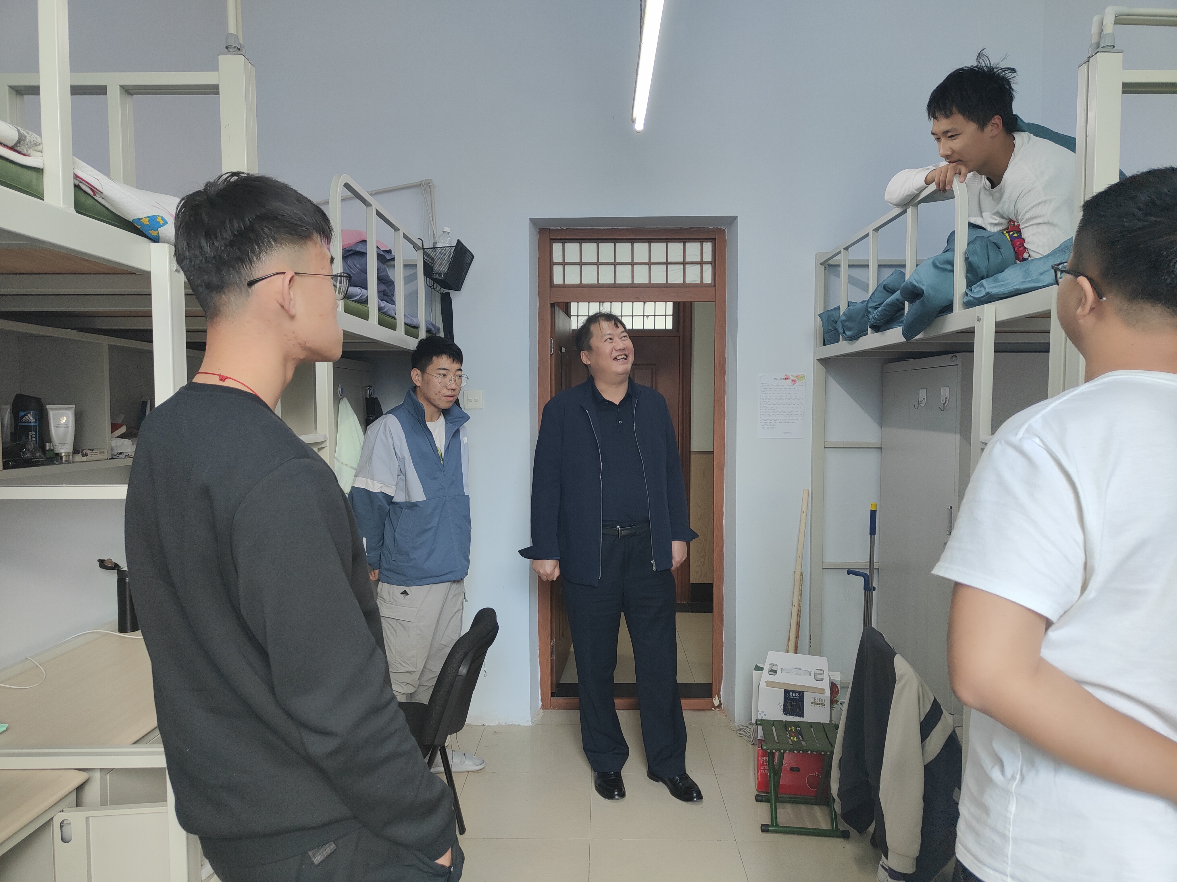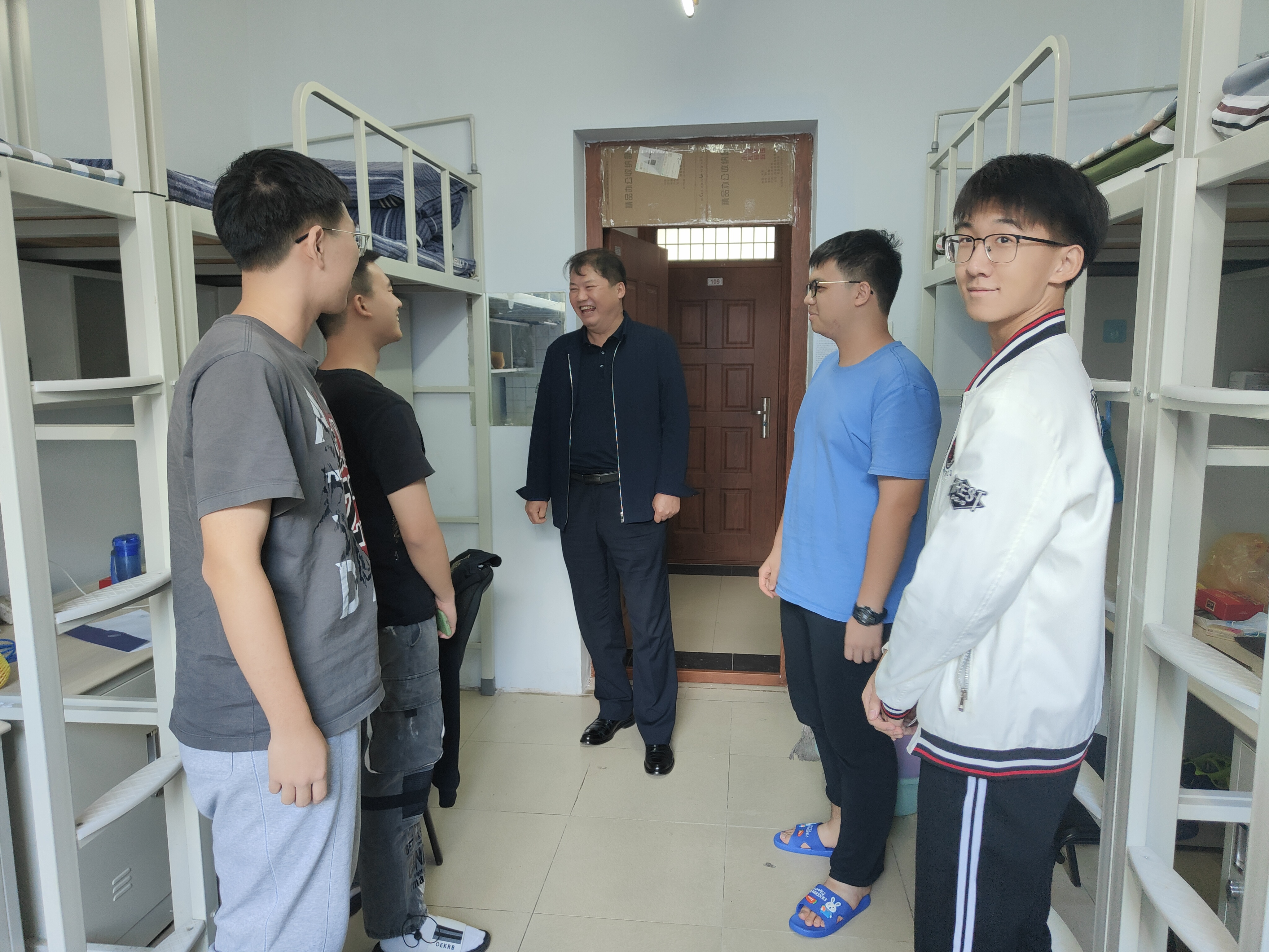 党委书记邱增凯,党委副书记周伟,副院长刘长胜,教育部重点实验室副主任边江,团委副书记马姗姗,新生辅导员孙鹏博一行来到南苑七公寓和南苑八公寓,看望2021级本科新生。