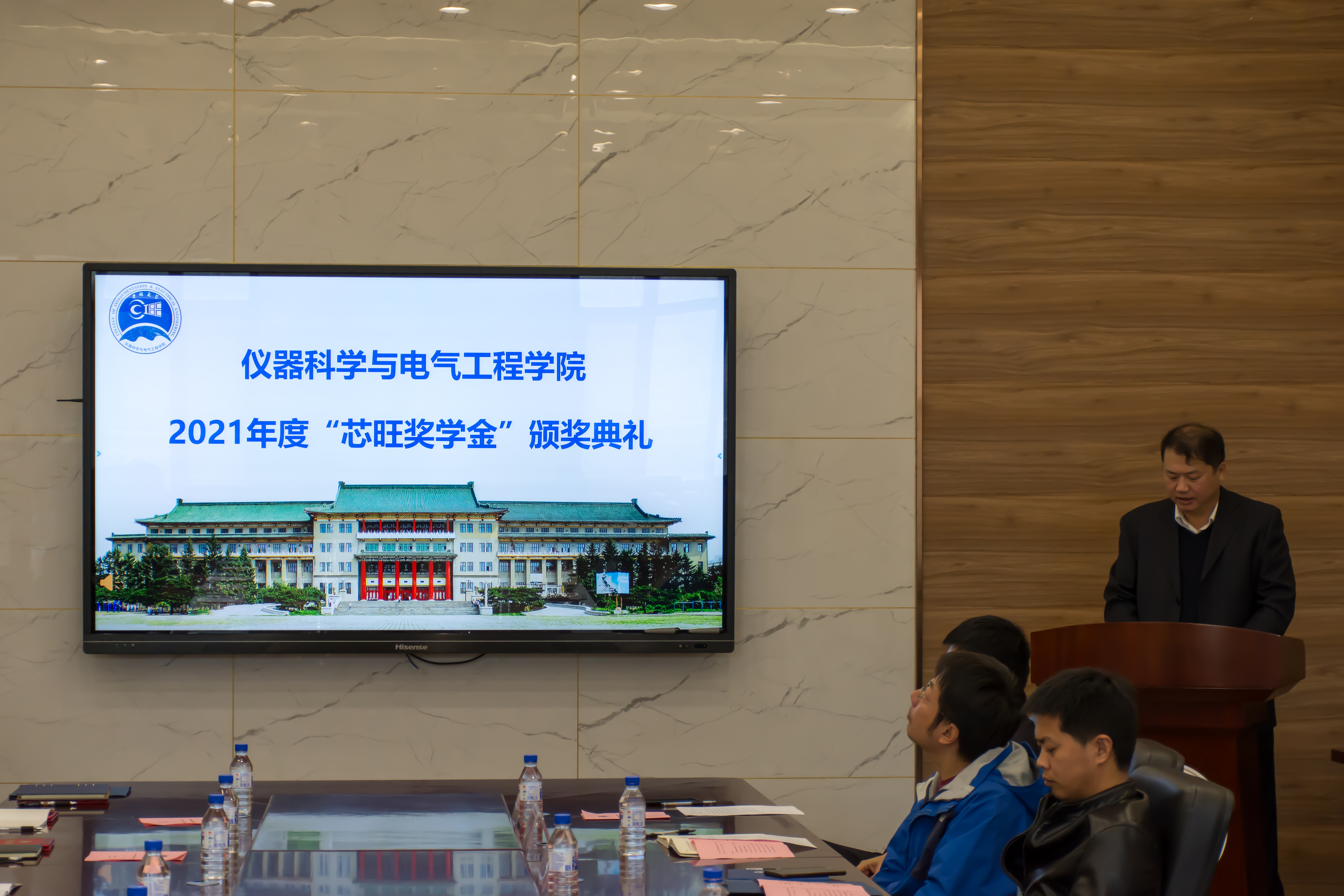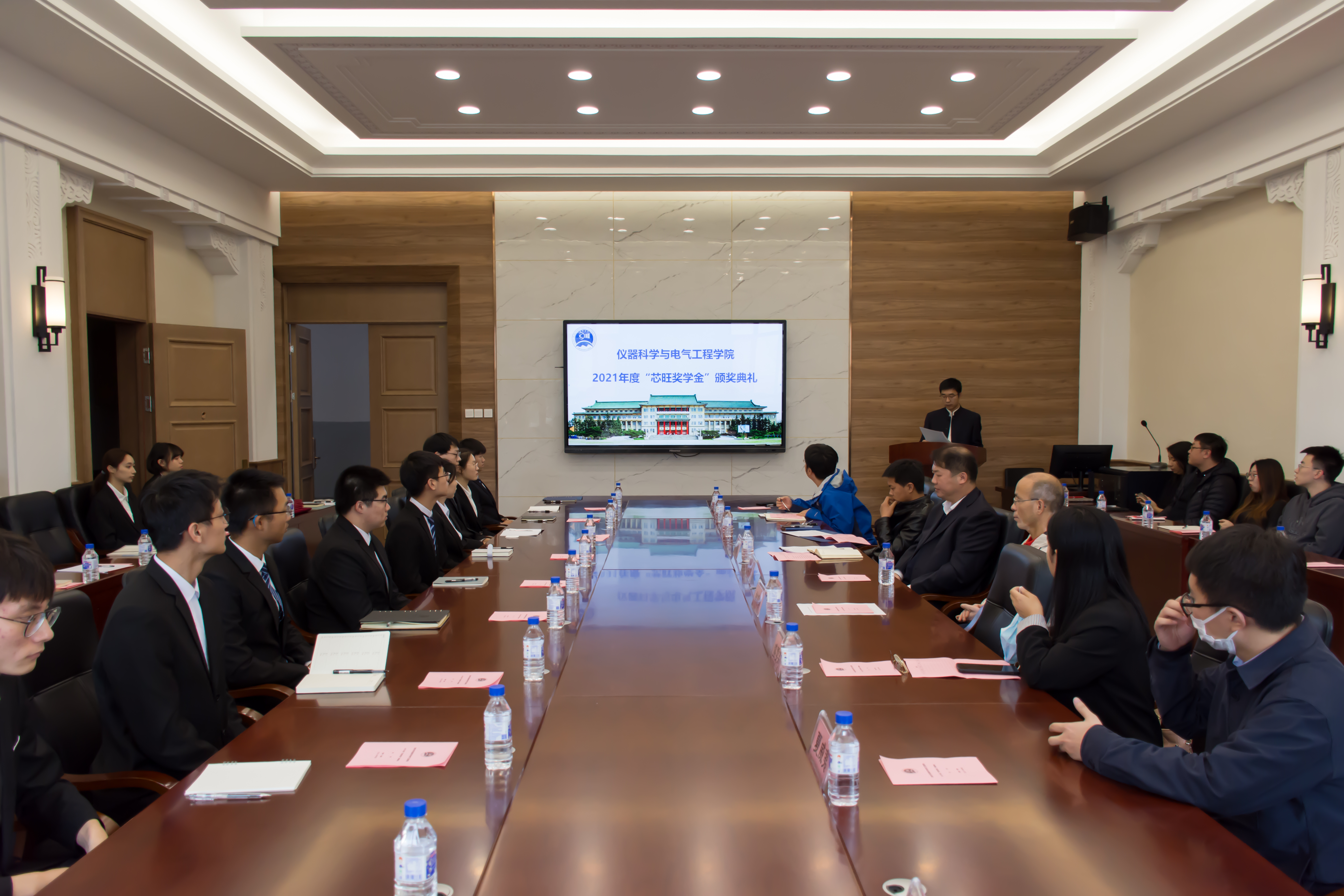 2021年10月29日下午,一色 在朝阳校区地质宫330举行了2021年度“芯旺奖学金”颁奖典礼。一色 党委书记邱增凯教授,副院长刘长胜教授,副院长随阳轶教授,团委副书记马姗姗老师共同出席典礼。上海芯旺微电子技术有限公司首席科学家张子三先生,夏威夷先生,盛雯莉女士受邀参加活动。仪式由学院党委副书记兼副院长周伟老师主持。