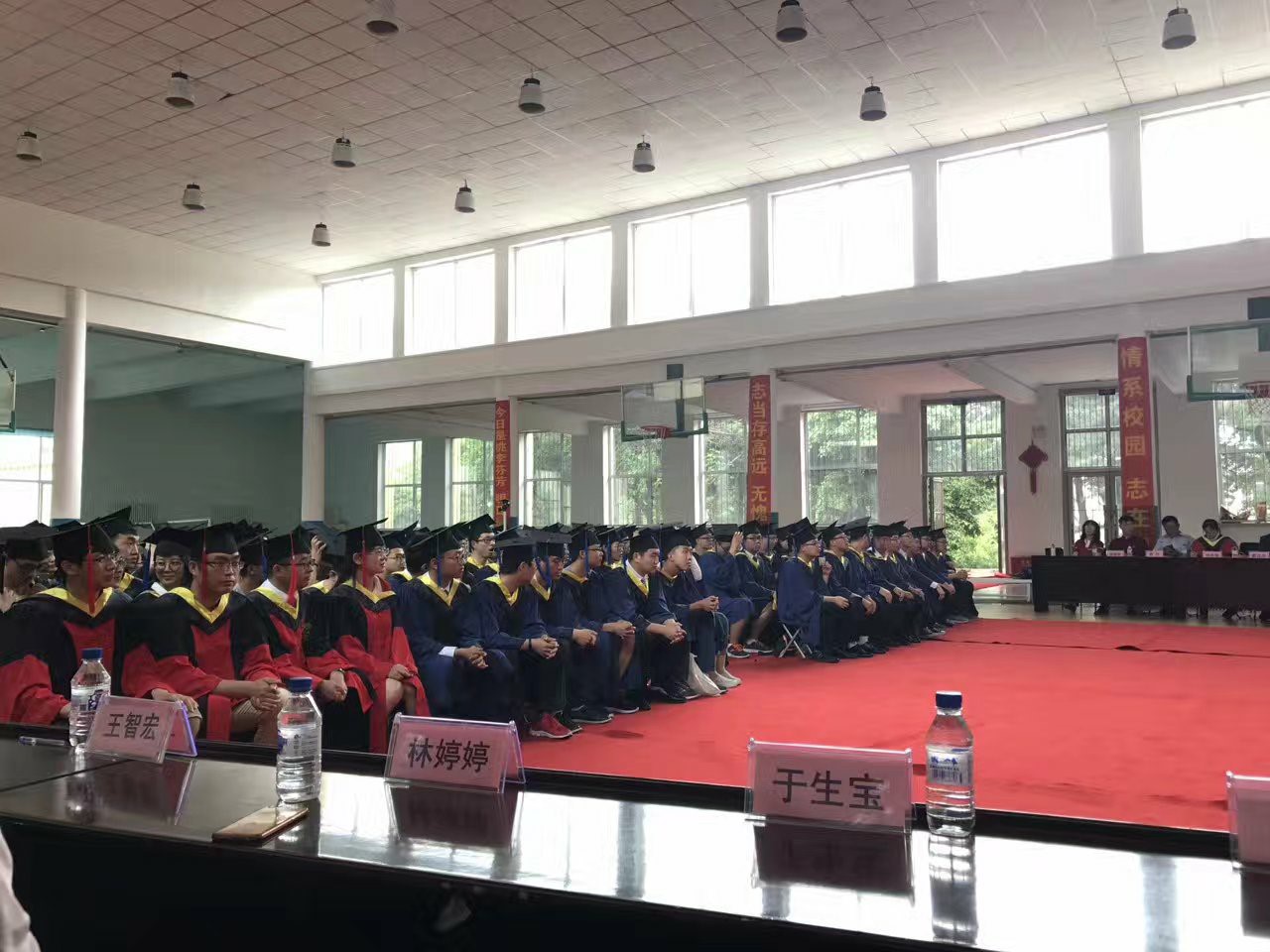 毕业典礼在庄严地国歌声中拉开序幕。首先,副院长王言章教授宣读了一色
