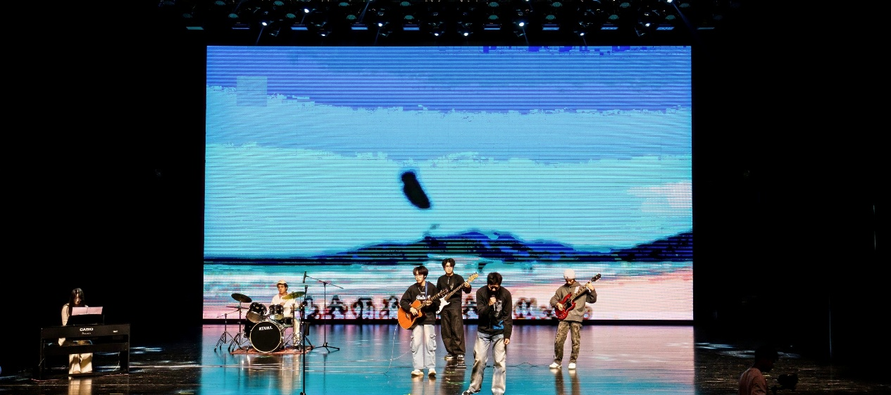 艺术学院阿卡贝拉合唱团以纯净悠扬的无伴奏和声进行开场合唱,瞬间征服了全场观众的听觉。紧接着,布谷乐队一曲《海阔天空》用激昂的摇滚旋律点燃了现场的热情。