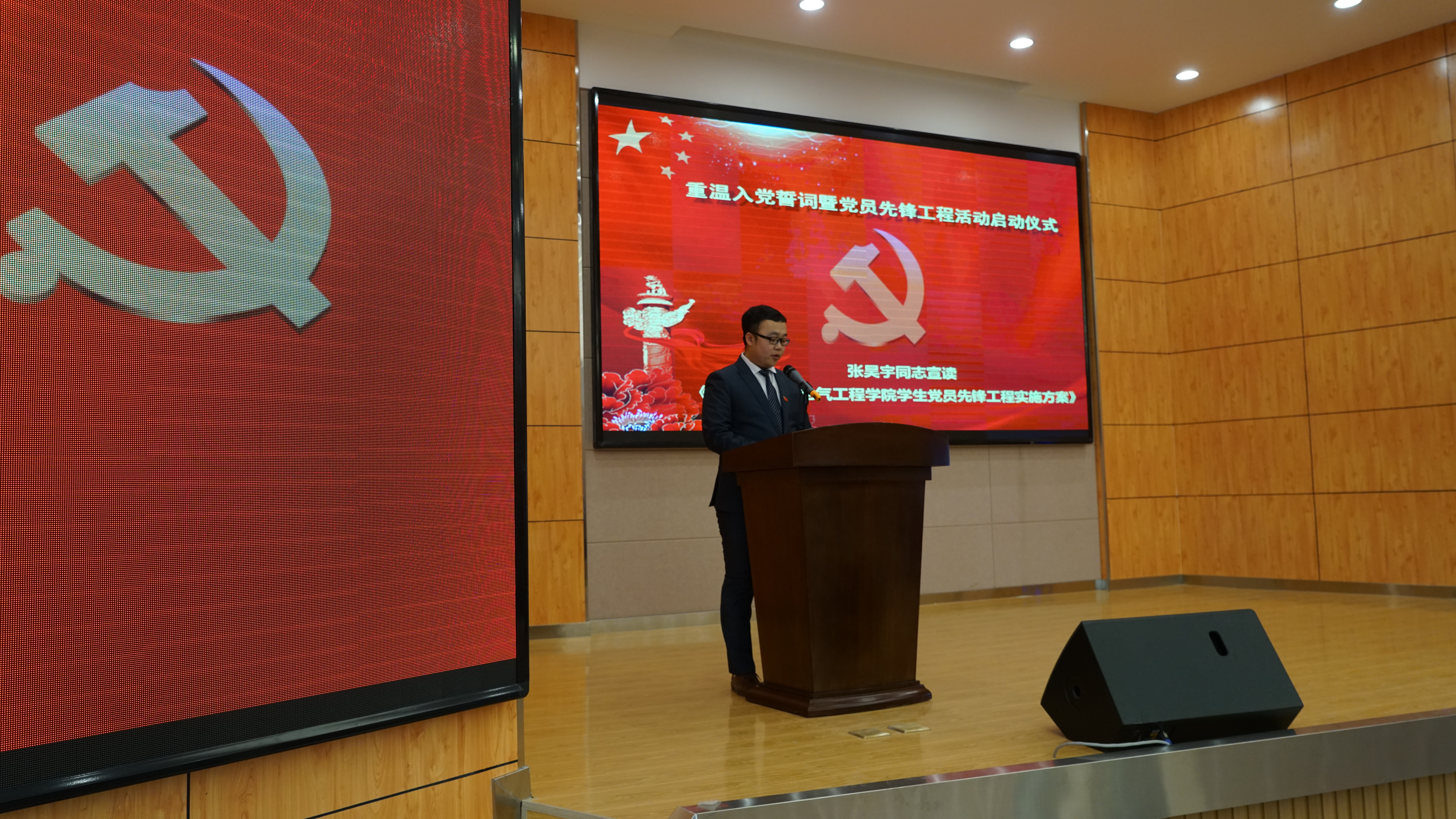 重温入党誓词暨党员先锋工程启动仪式在朝阳校区图书馆报告厅隆重举行。学院全体党员参加了启动仪式。仪式由学院党委副书记邱增凯同志主持。