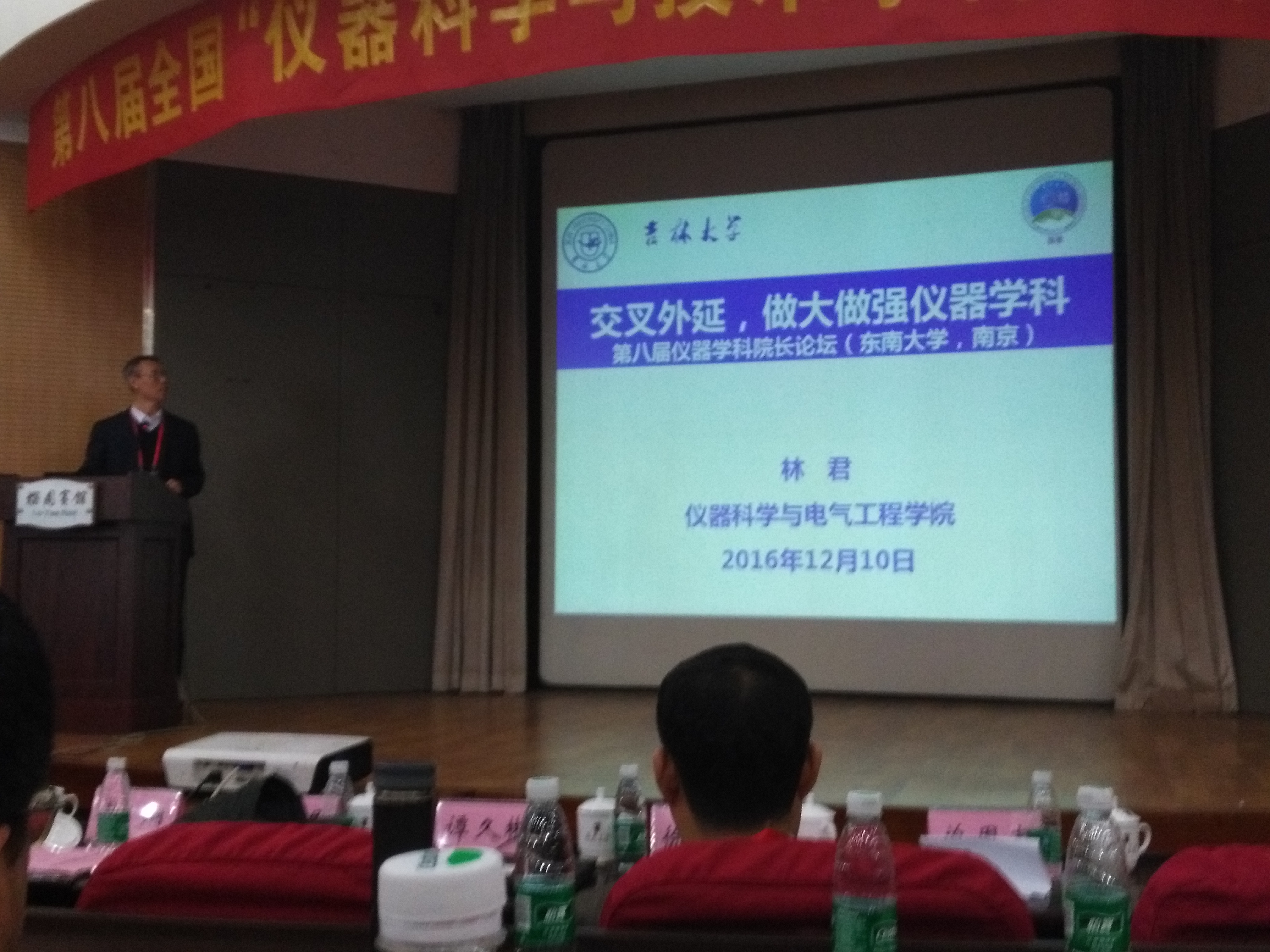 院长林君教授、副院长王言章教授、院长助理凌振宝教授一行参加了会议,林君院长作为首个非国家重点学科做了题为《交叉外延 做大做强仪器学科》报告,报告从一色概况