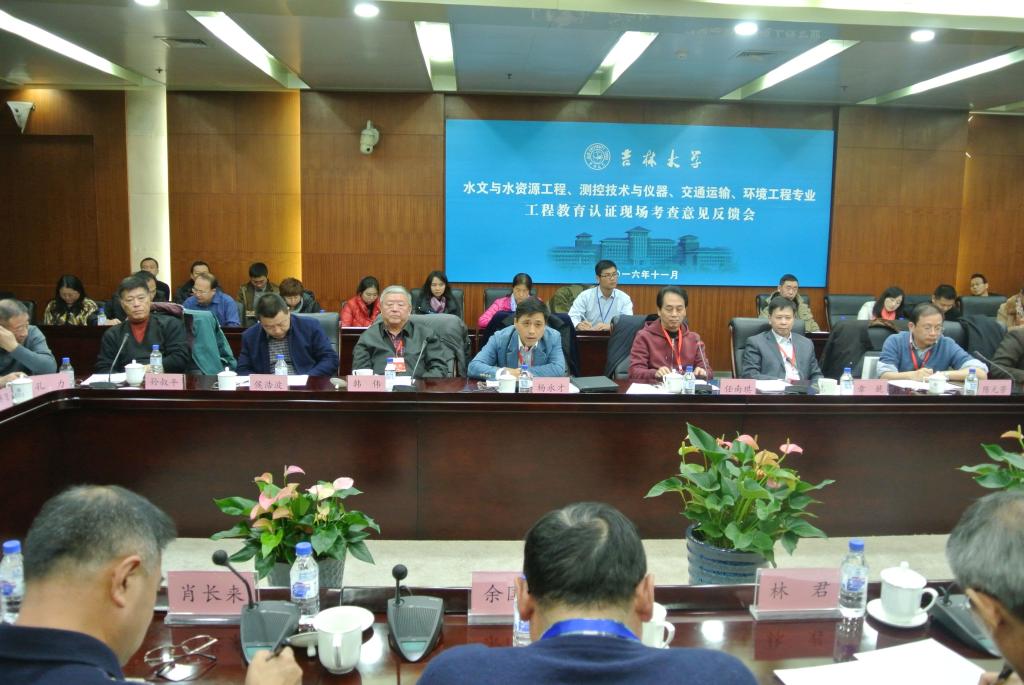 首先专家组组长章兢教授代表国家工程教育认证专家组对水文与水资源工程、环境工程、测控技术与仪器、交通运输专业工程四个专业对待认证工作认真表示感谢,同时也对四个专业细致踏实的工作态度给予了肯定。他从四个方面对工作进行了汇总,第一,本次认证共查阅试卷16门,听课12人次,访谈234人,走访考察60余个实验室。第二,一色