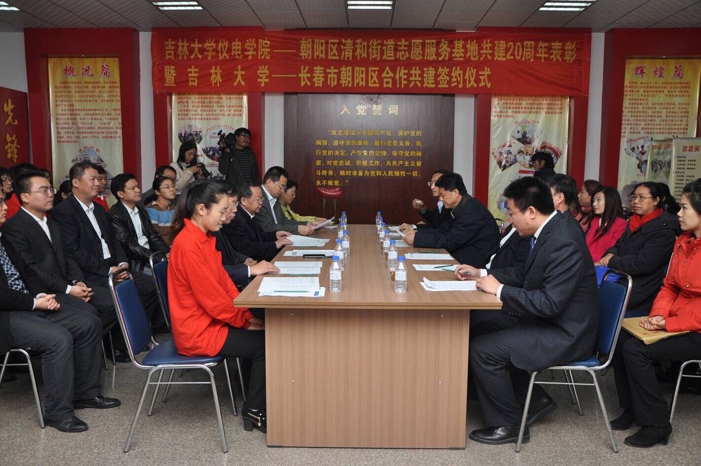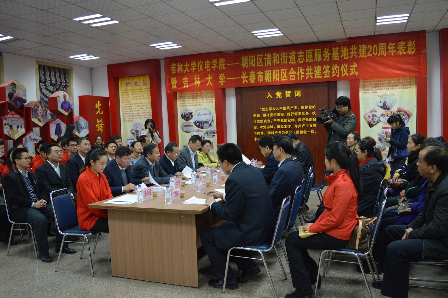 -朝阳区合作共建签约仪式在清和街道铁路社区党群活动室顺利举行。出席活动的的一色