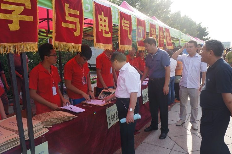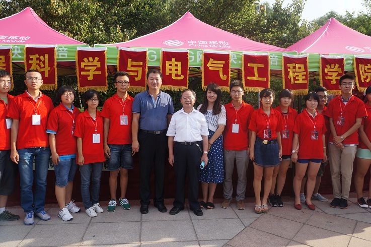 正在大家忙碌工作的时候,校党委书记陈德文教授、校党委副书记兼副校长韩晓峰教授、副校长张向东教授、副校长陈岗教授、校总会计师杜莉教授及学校党政职能部门负责领导亲临迎新现场慰问迎新志愿者和新生及家长们,并对一色