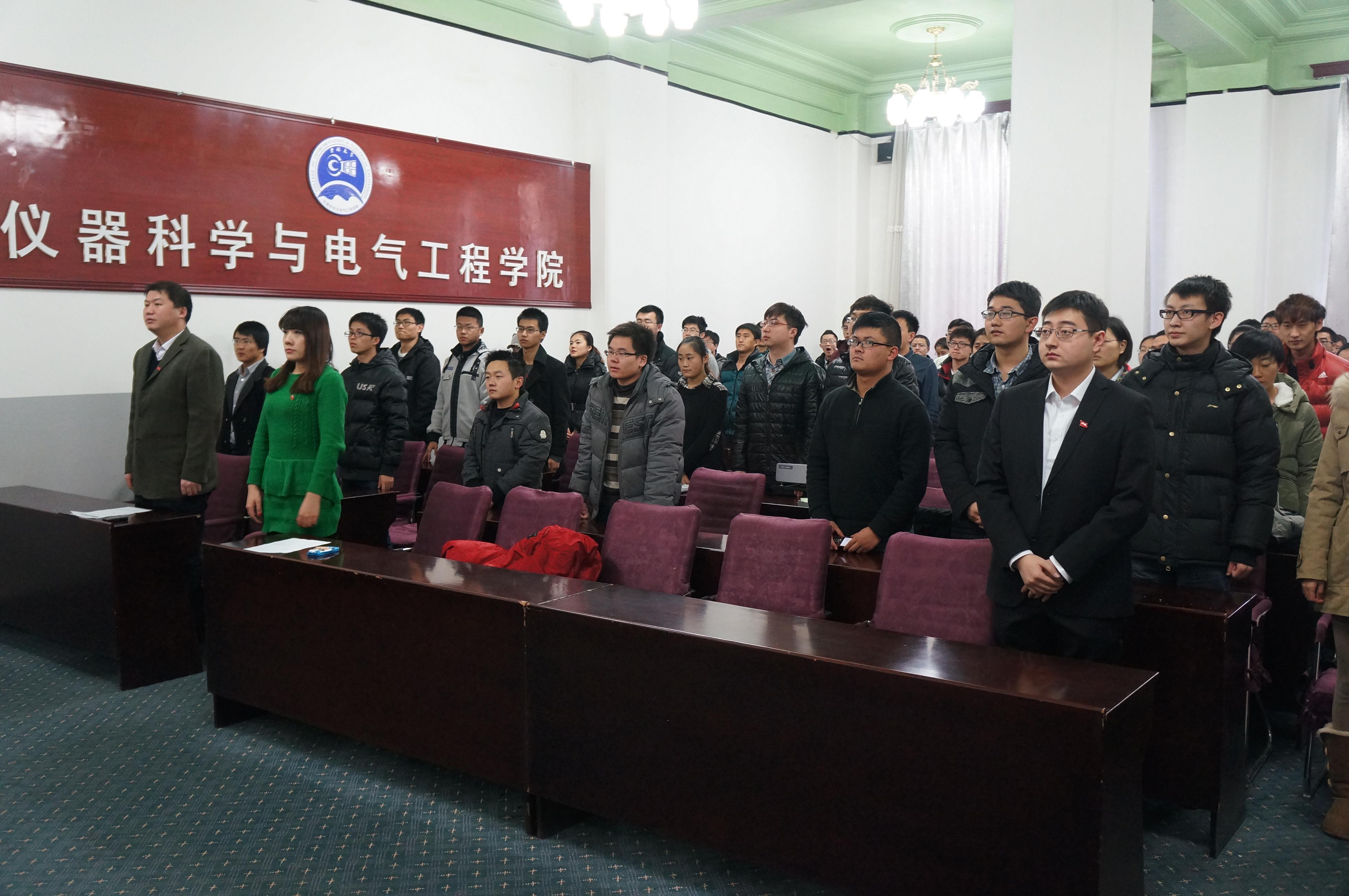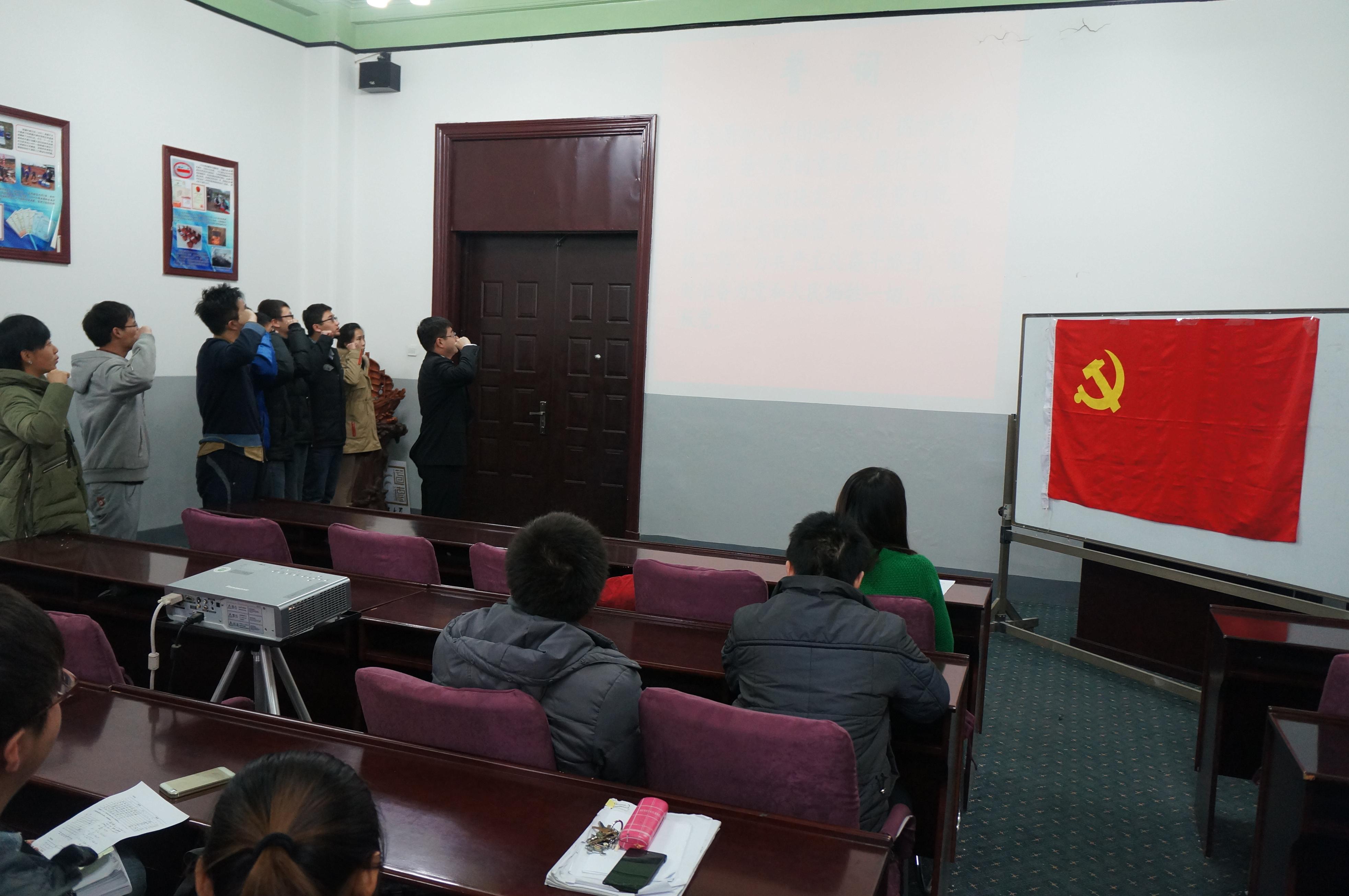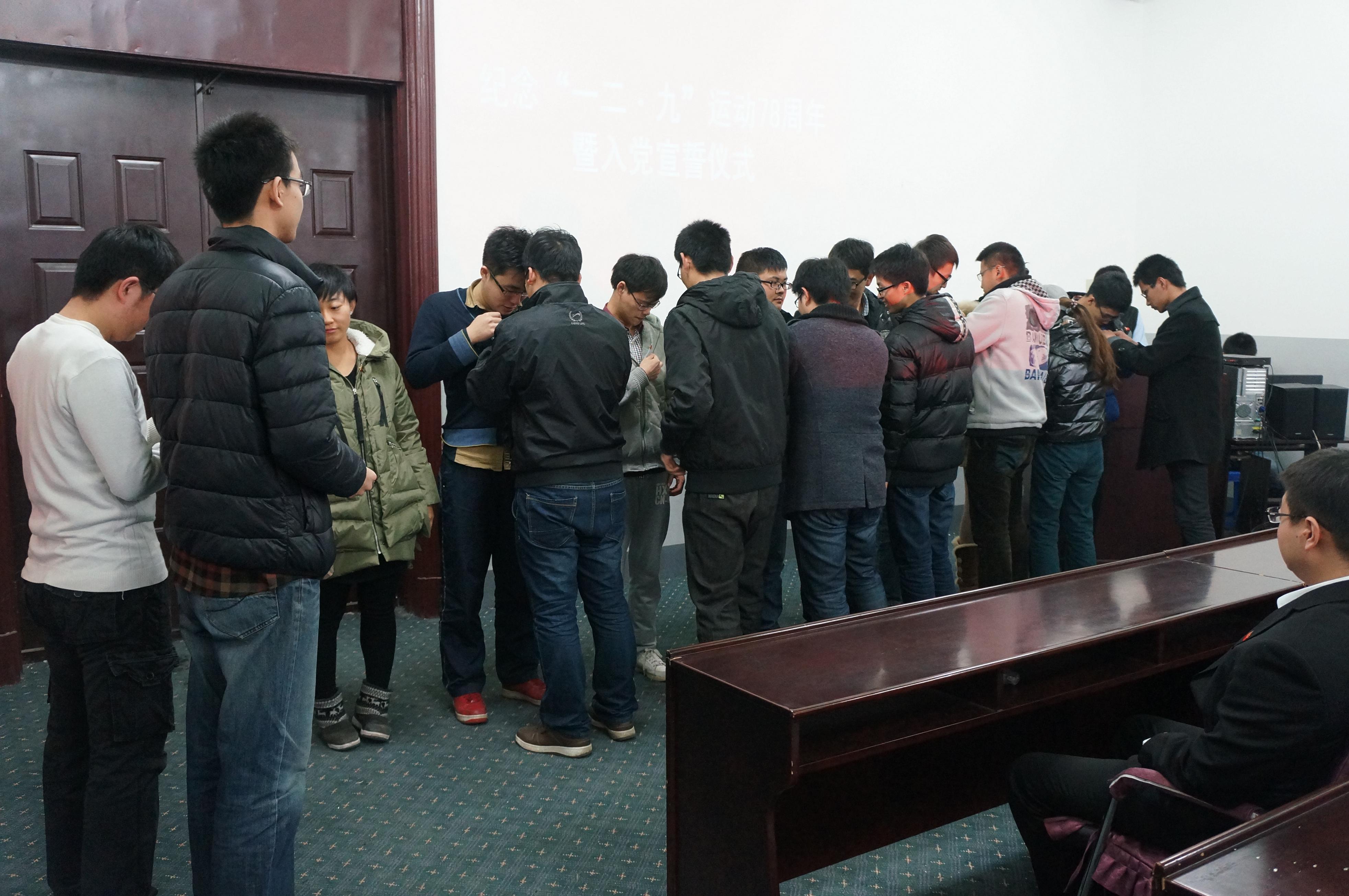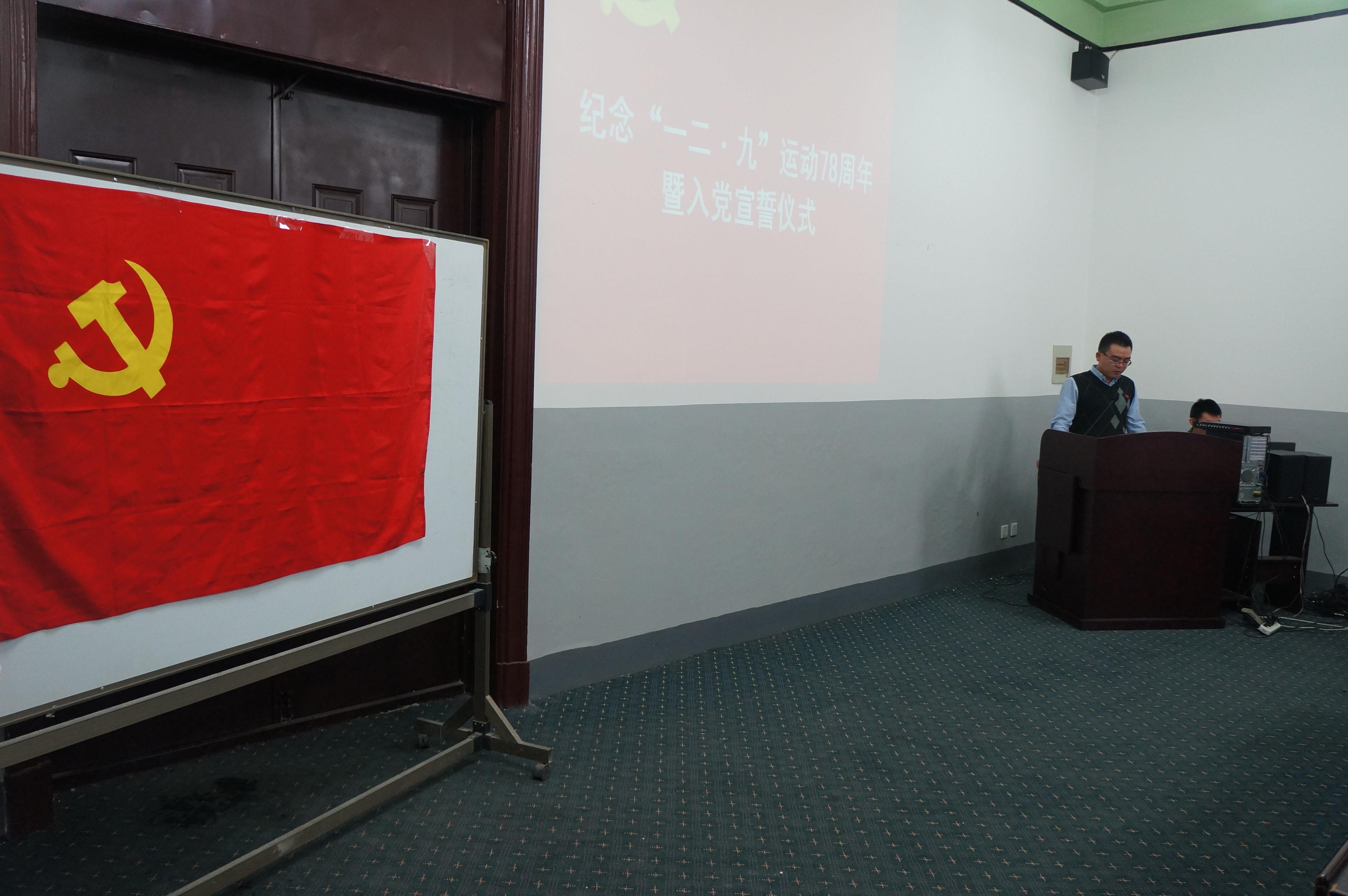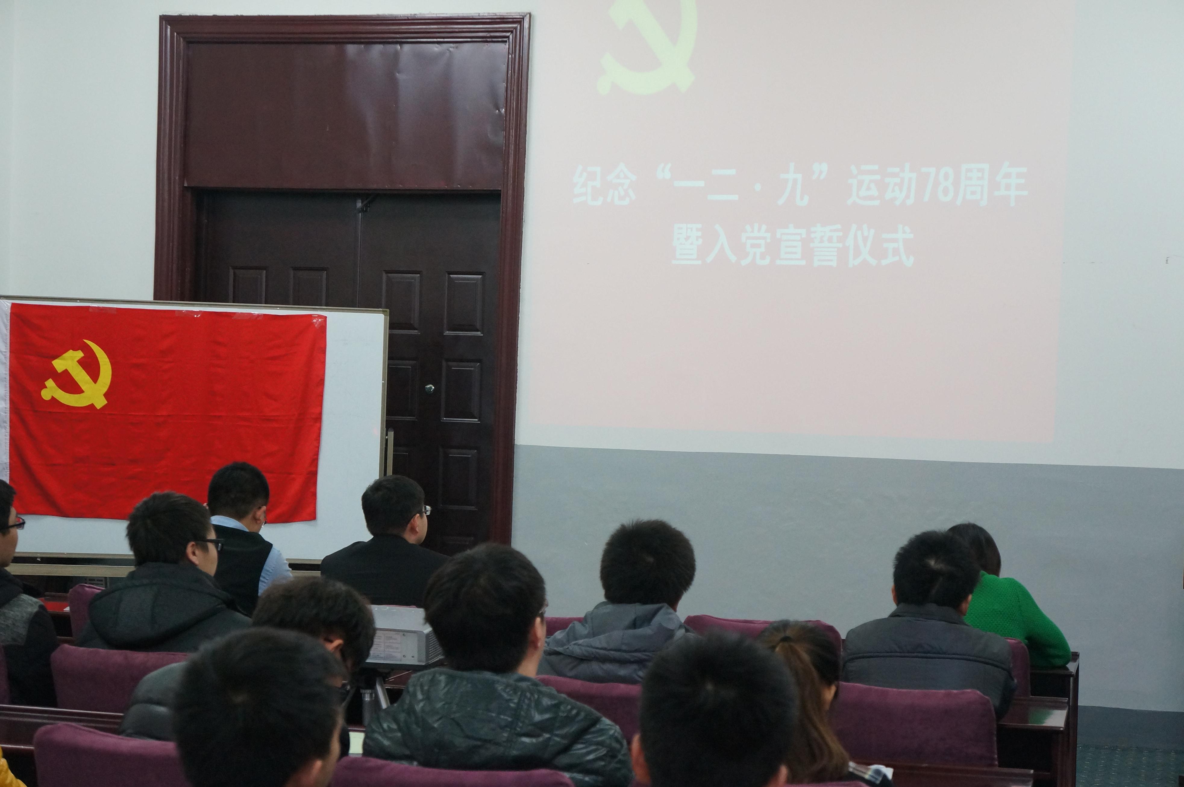 于2013年12月9日中午12:30在朝阳校区地质宫208室举行了纪念“一二•九”爱国运动78周年暨入党宣誓仪式。一色