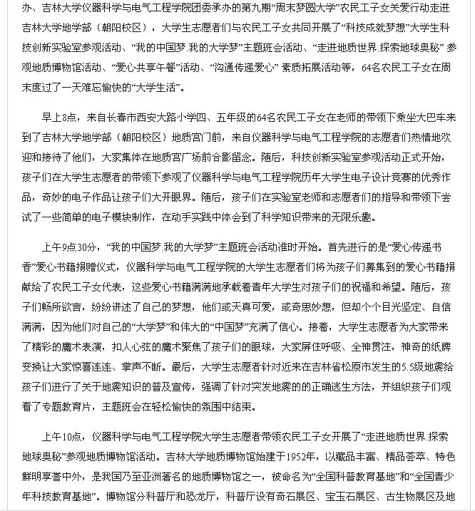 “关爱农民工子女周末圆梦大学” 》