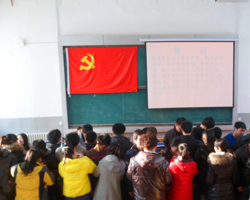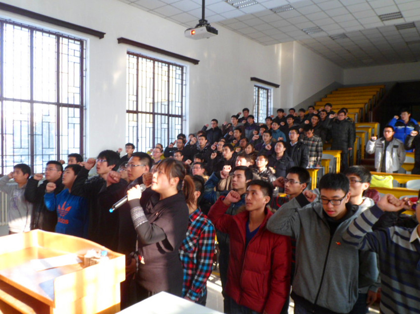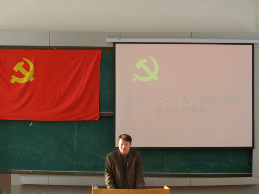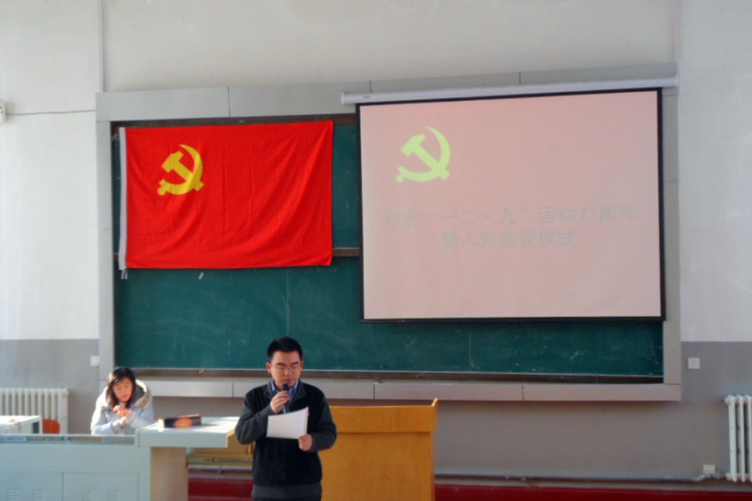 于2012年12月10日中午12:00在朝阳校区地质宫224室隆重举行了纪念“一二•九”爱国运动77周年暨入党宣誓仪式。一色