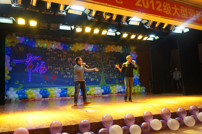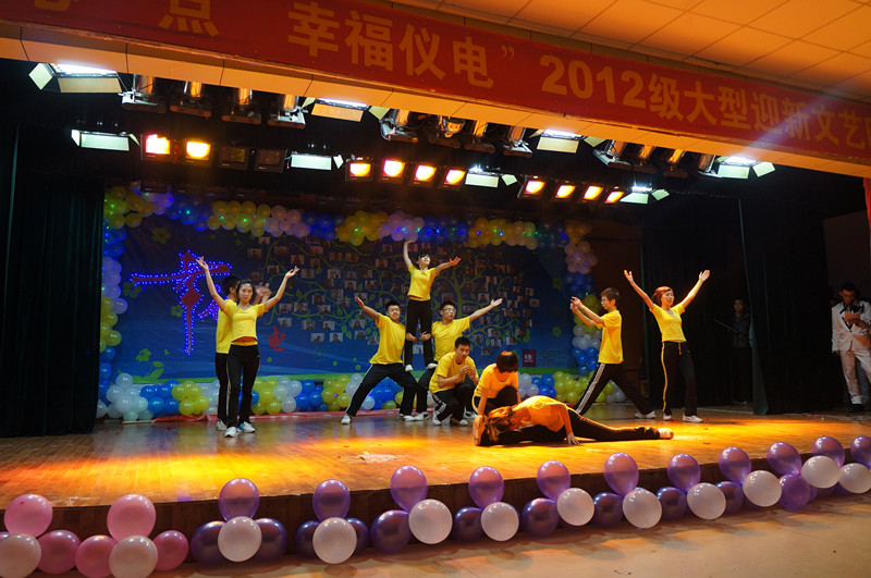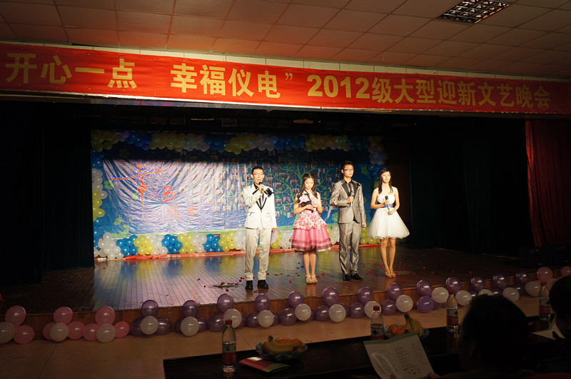 在中心校区田家炳A座礼堂举办了以“开心一点,幸福仪电”为主题的2012年迎新文艺晚会。晚会得到了学校和学院领导老师的高度重视,一色