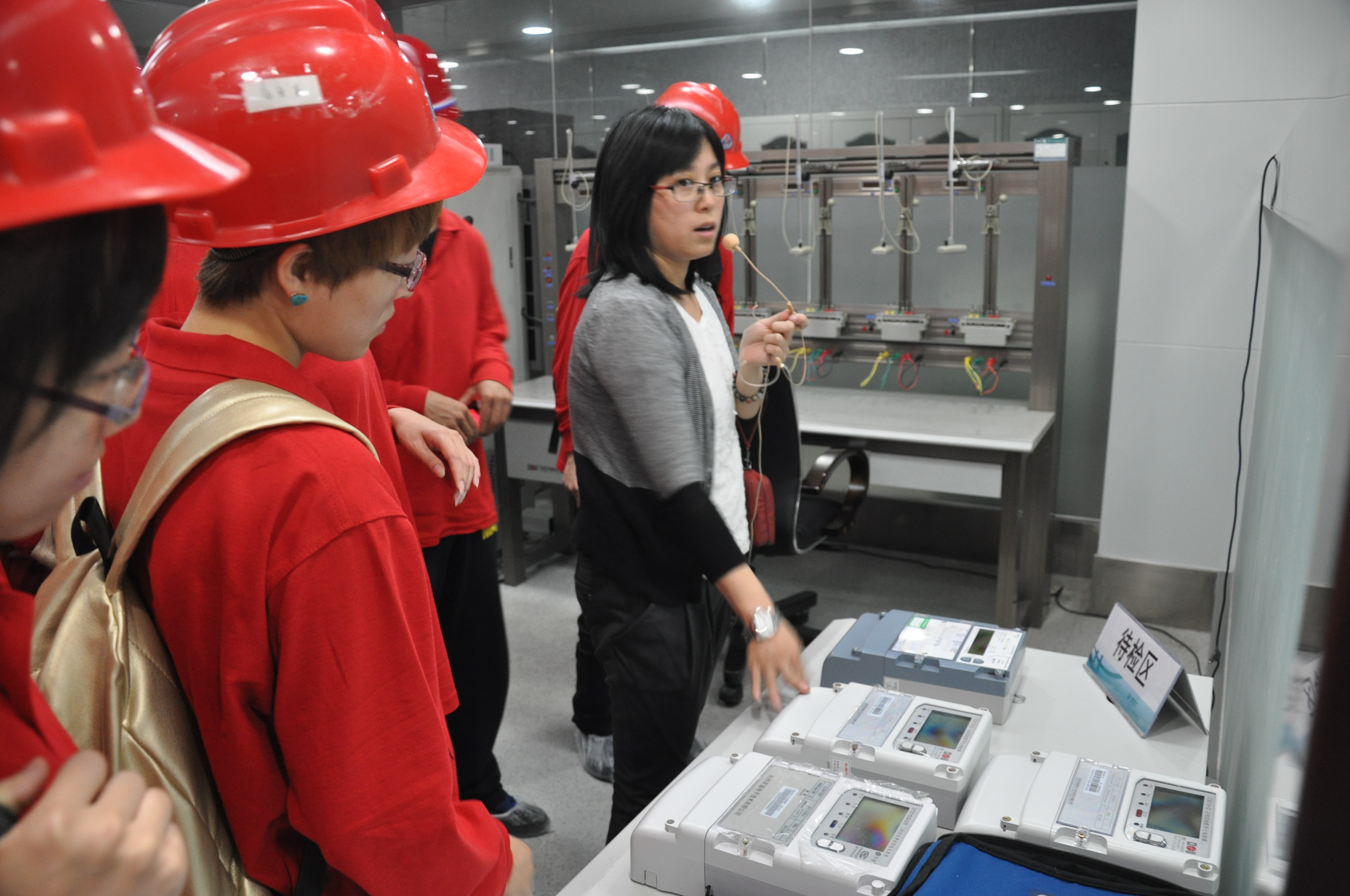 气氛热络的会议室交流后,同学们又参观了高电压实验室,面对着巨型的高电压试验设备,同学们叹为观止。之后的计量实验室,更让同学们接触到了比较前沿的电气设备和测量设备,这些学校难得一见的设备让同学们大开眼界,兴奋异常,参观实习确实不虚此行。