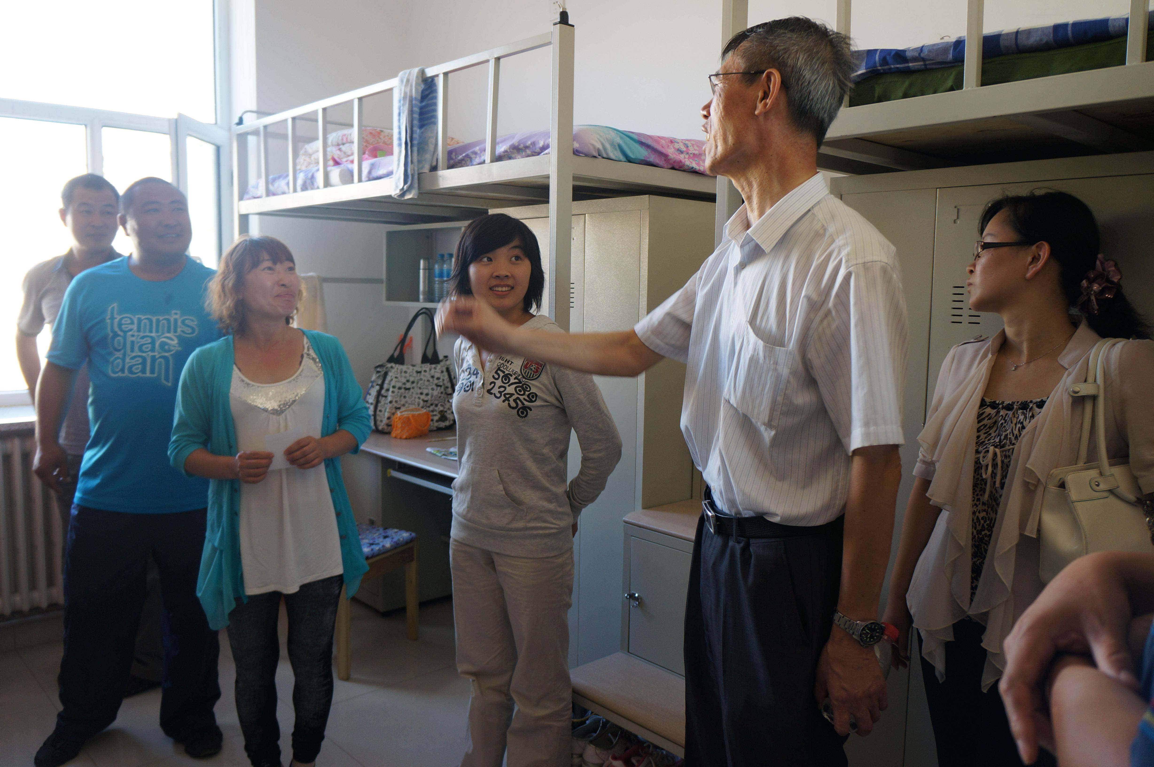 学院领导一一走访了新生宿舍,与2012级新生及家长们亲切交谈。学院领导细心地询问大家的家乡、生活起居、住宿条件等方面问题,他们非常关心南方的新同学是否习惯北方的气候与饮食。新生们纷纷表示很满意学校的住宿条件,并非常有信心尽快适应大学新生活。在走访过程中,学院领导鼓励同学们要珍惜良好的条件,刻苦学习,用知识充实头脑,努力成为祖国的栋梁之才。此外,学院领导们还嘱咐同学们要养成良好的生活习惯,合理分配自己的时间,不要沉迷于网络和娱乐,要在大学四年中努力奋斗、拼搏进取。
