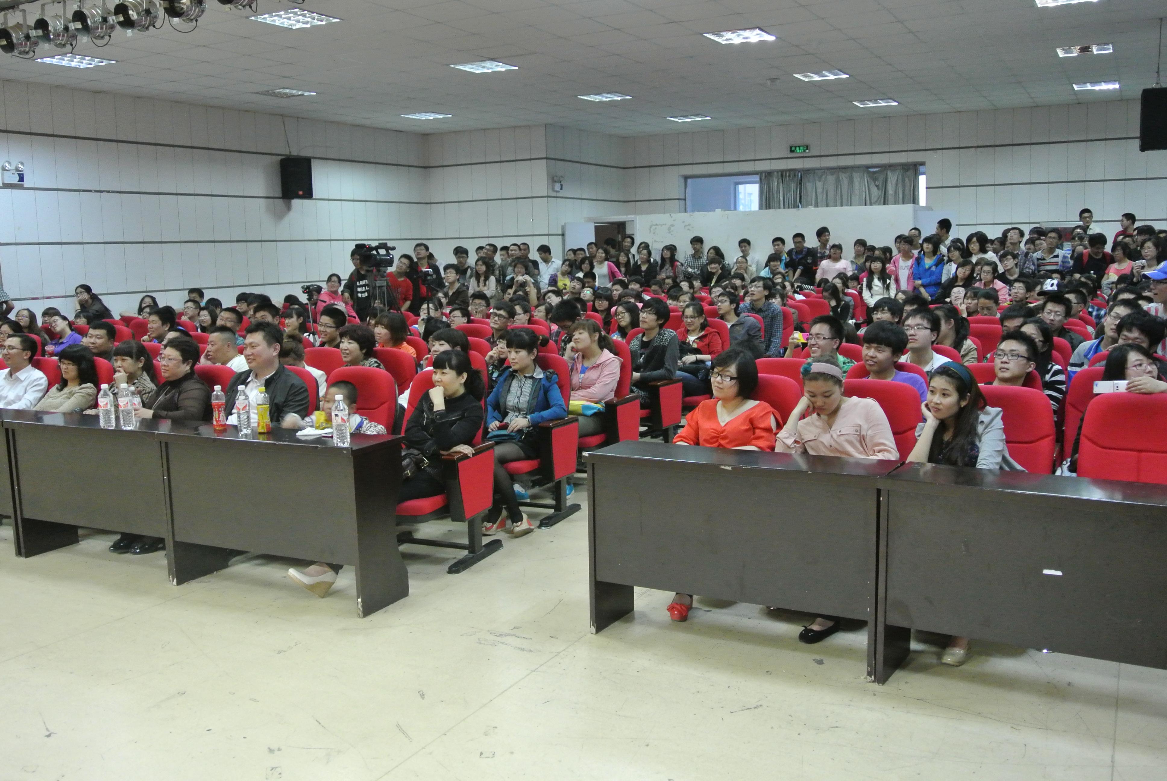当天的演出现场人头攒动、人山人海,礼堂内早早地挤满了来自各个学院的老师和同学,在大家的热情期盼下,首先出场的是大林老师和仪电学院的王松同学,他们带来的《对座数来宝》点燃了全场观众的热情。我省文联曲艺家协会的优秀艺术家和我校大学生同台表演,场内笑声连篇,掌声不断,诙谐的剧情和生动的表演给观众们留下了深刻的印象。随后,共有5组相声演员相继登台表演,为我校师生带了无尽的欢笑。最后,著名相声演员郭德纲的亲传弟子房小满和于谦徒弟太荣剑联合登场,他们的一段《武座子》再次引爆全场气氛,他们搞笑的语言、丰富的表情、意想不到的“包袱”以及雷人的动作将活动推向了一个的高潮。在观众们的欢声笑语中,这场视觉与听觉的盛宴圆满结束。