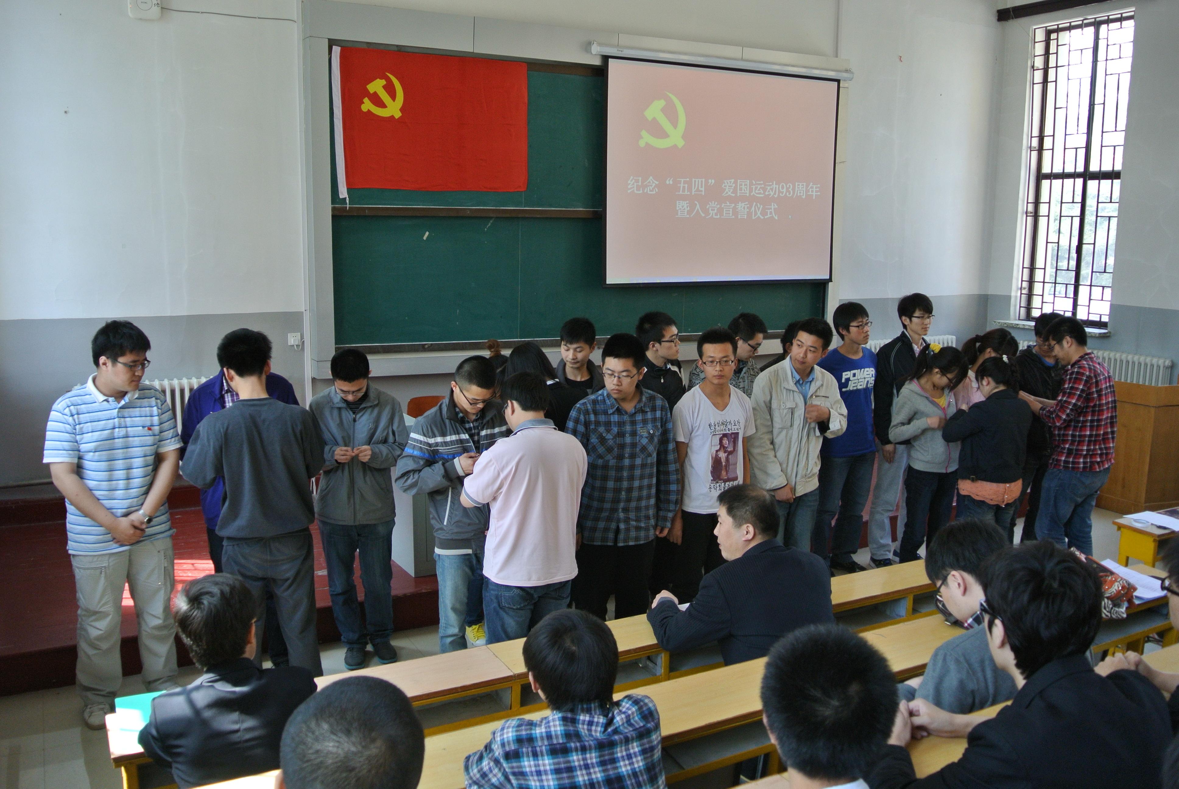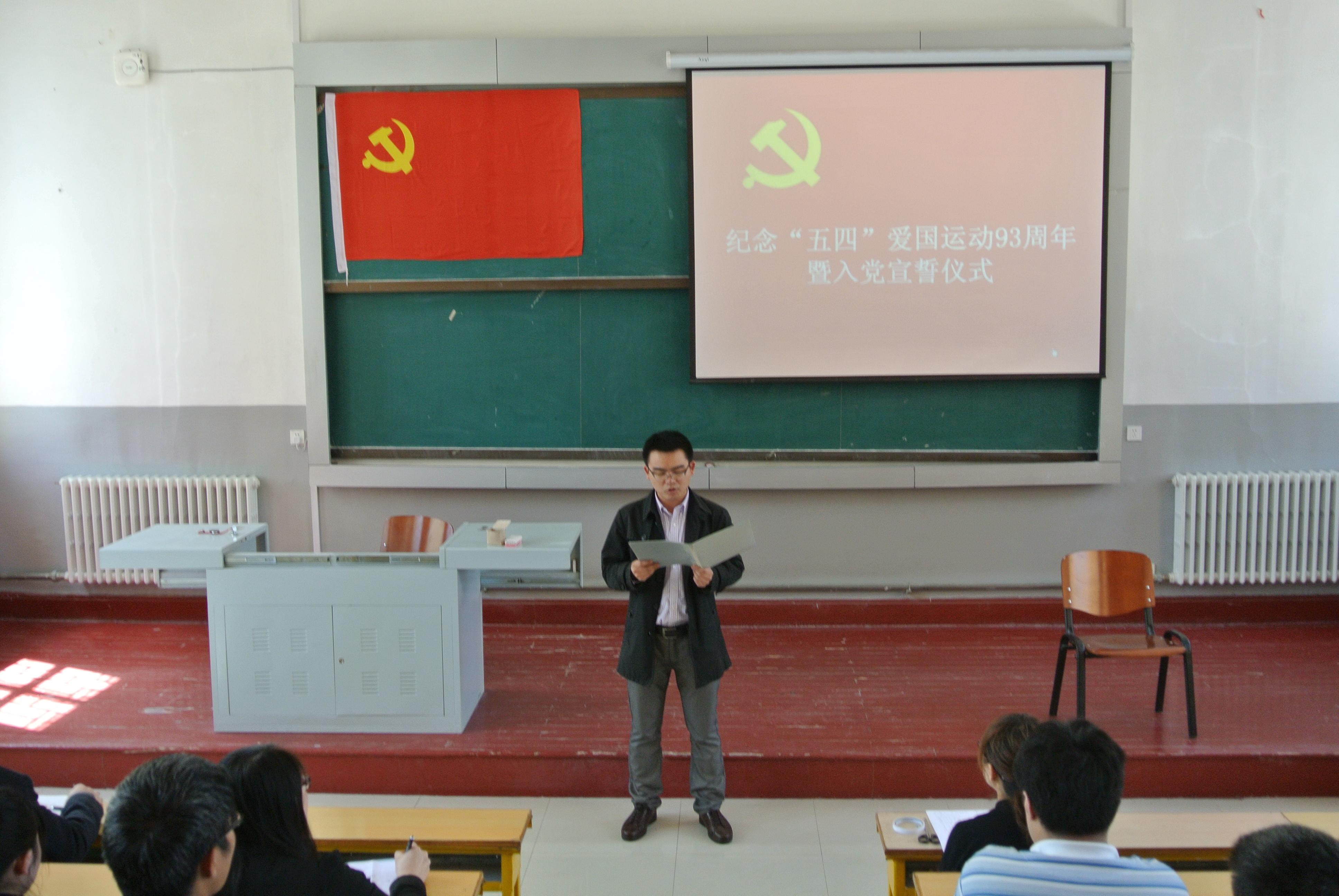 于2012年5月4日中午12:00在朝阳校区地质宫224室隆重举行了纪念“五四”爱国运动93周年暨入党宣誓仪式。一色