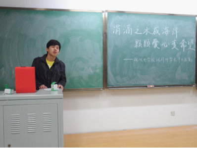 2011级学生于3月22日18:30在中心校区李四光楼308教室组织开展了以“传递爱心,奉献关怀”为主题的爱心捐款活动。