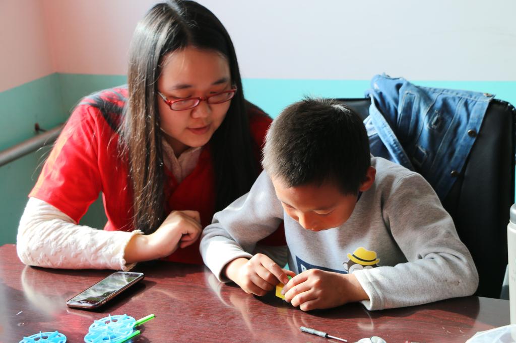 11月8日,仪电学院师生带着精心准备好的礼物和洋溢的热情到达刘芳小学,校长带领老师们对扶贫小队的到来表达了欢迎及感谢。科技课堂开始后,小队成员与六位小学生一见面便打成一片,同学们指导孩子制作电子马车,同时宣传组为刘芳小学制作两面弘扬社会主义核心价值观的黑板报,其中一面主题为“少年中国说”,启迪学生树立远大志向,而另一面以我校校训“求实创新,励志图强”为主题,这不仅是“吉人天下”的印记,更是在激励学生努力学习。马车制作完成后,孩子们还在空地上进行了比赛,看着他们充满活力的笑脸和对电子科技表现出的兴趣,小队成员们倍感高兴与欣喜。午餐完毕,小队成员们与孩子们一起玩耍,进行了木头人、你画我猜等趣味活动。