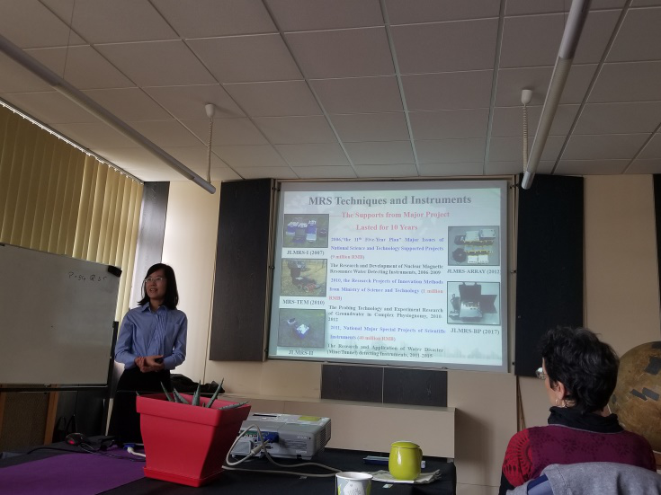 法国斯特拉斯堡大学Jean-Francious教授团队近年来在地面磁共振研究领域取得了较多显著研究成果,并成功申获2021年第八届MRS国际研讨会举办权。交流过程中,一行人密切关注了国际磁共振技术与电法勘探技术的最新研究进展,与参会的各位专家学者进行了深入的讨论。万玲副教授就一色