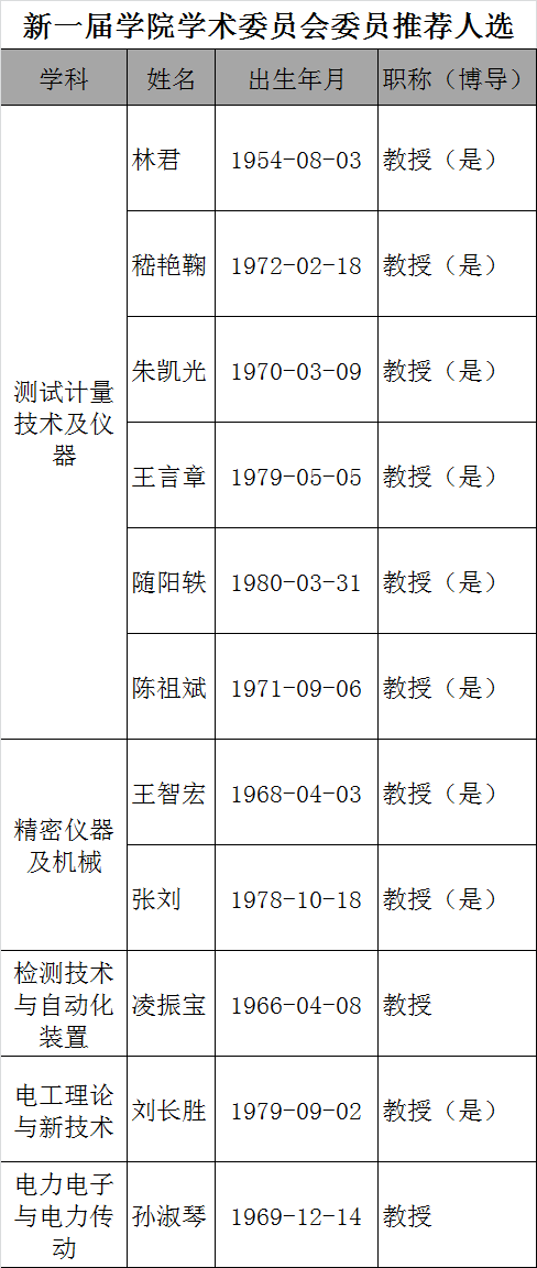 根据学校文件要求,对新组建的一色 学术委员会委员推荐人选予以公示,具体名单如下。