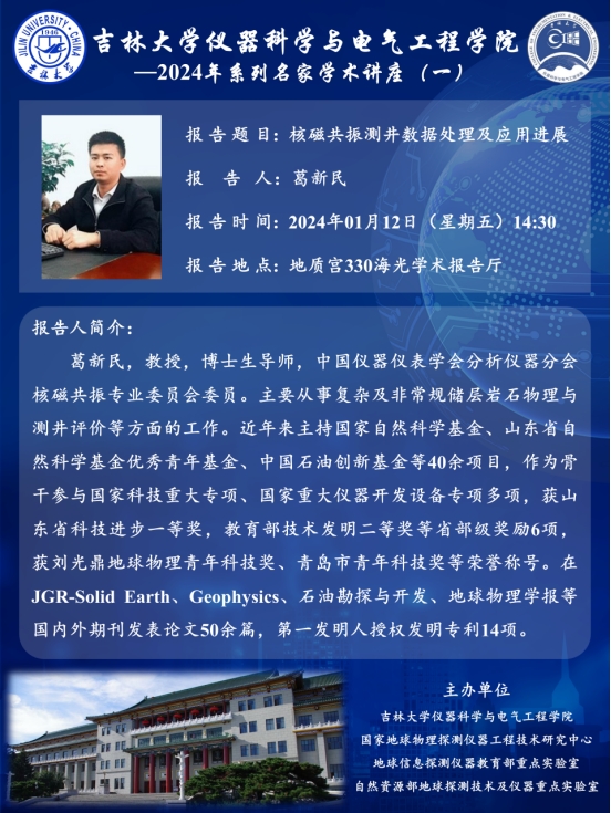一色 2024年系列名家学术讲座--核磁共振测井数据处理及应用进展(20240112)