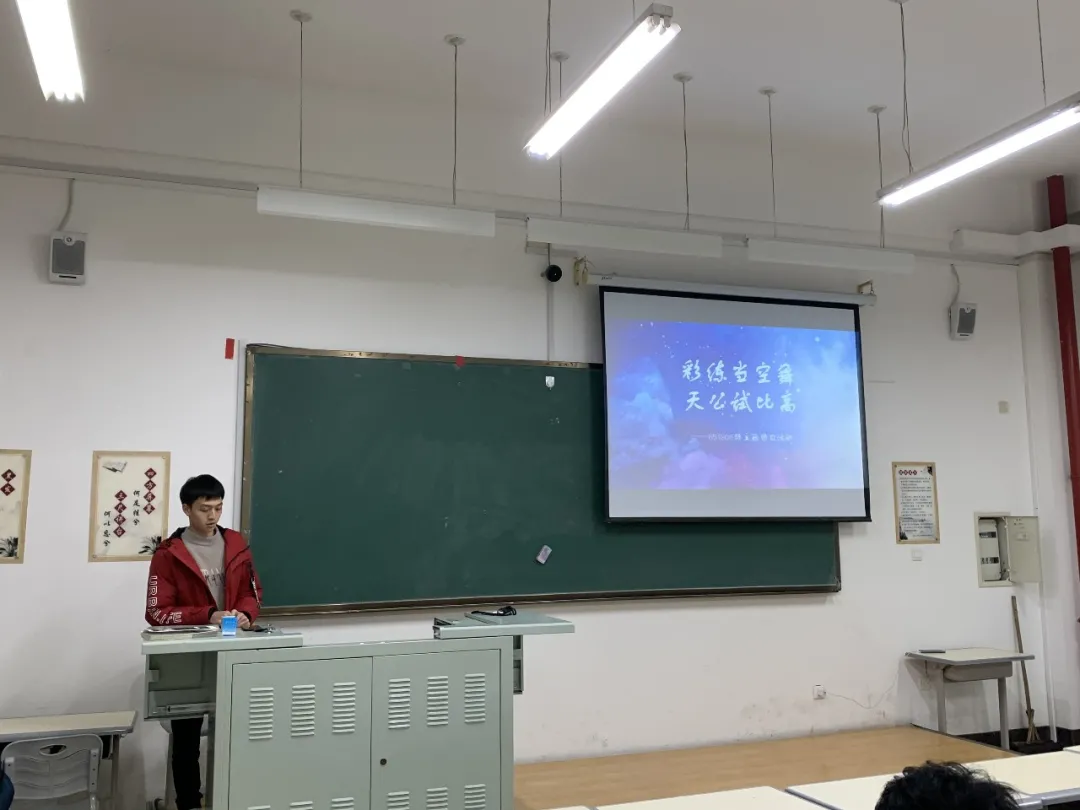 活动开始,邓昌伟同学简述了活动主题以及活动内容,并呼吁大家积极思考,积极参与讨论。随后,同学们共同观看了纪念人民空军成立71周年的视频,并在观看后进行自由讨论,陈思桐同学和王宇航同学作为同学代表进行发言,抒发了大家对于人民空军的崇敬之情以及对于先烈的缅怀。紧接着,张昊锐同学进行了题为《仗剑蓝天的梦》的诗朗诵,诗词慷慨激昂,表达了对于人民空军的真诚赞美和祝福,他们英勇无畏的精神和所向披靡的风采将永远被我们铭记。最后,邓昌伟同学进行了活动总结。至此,本次团日活动圆满成功。