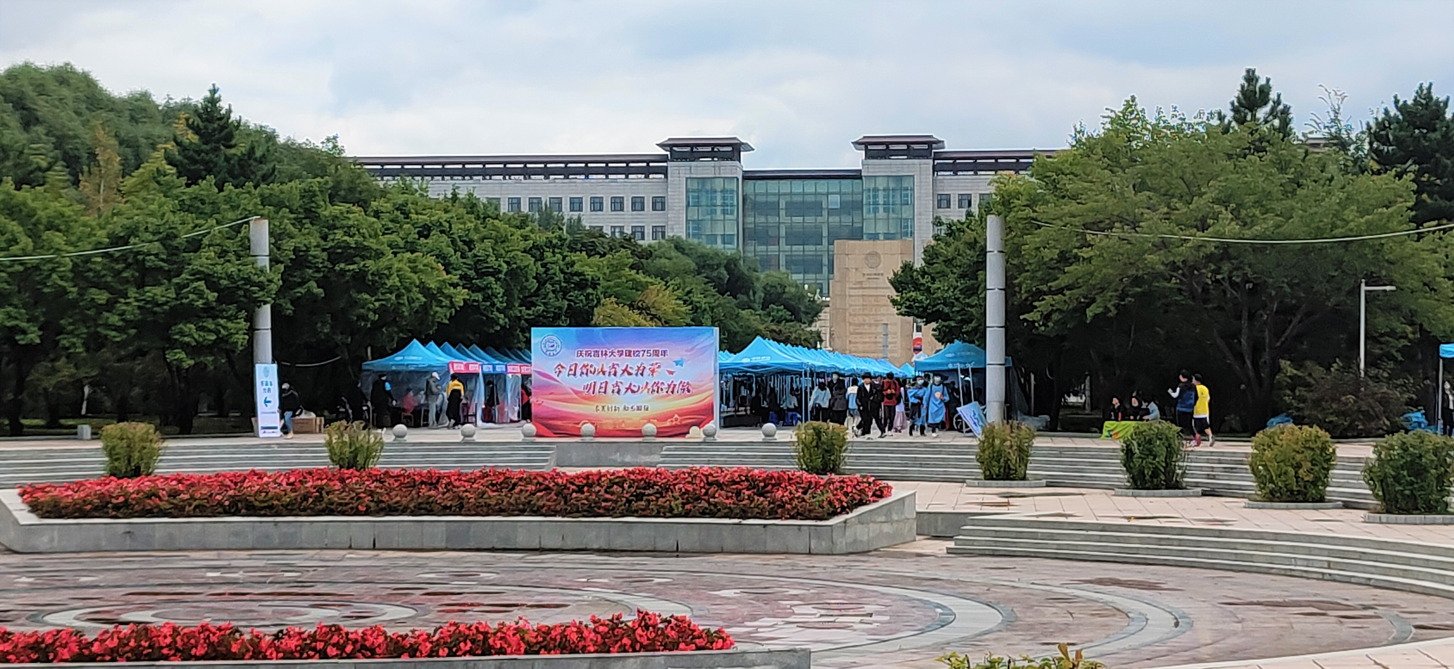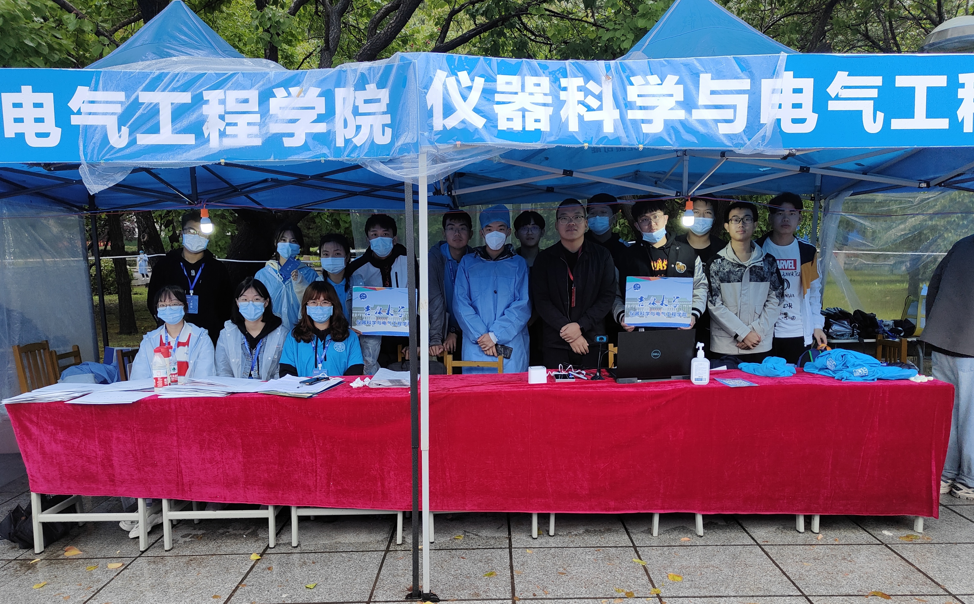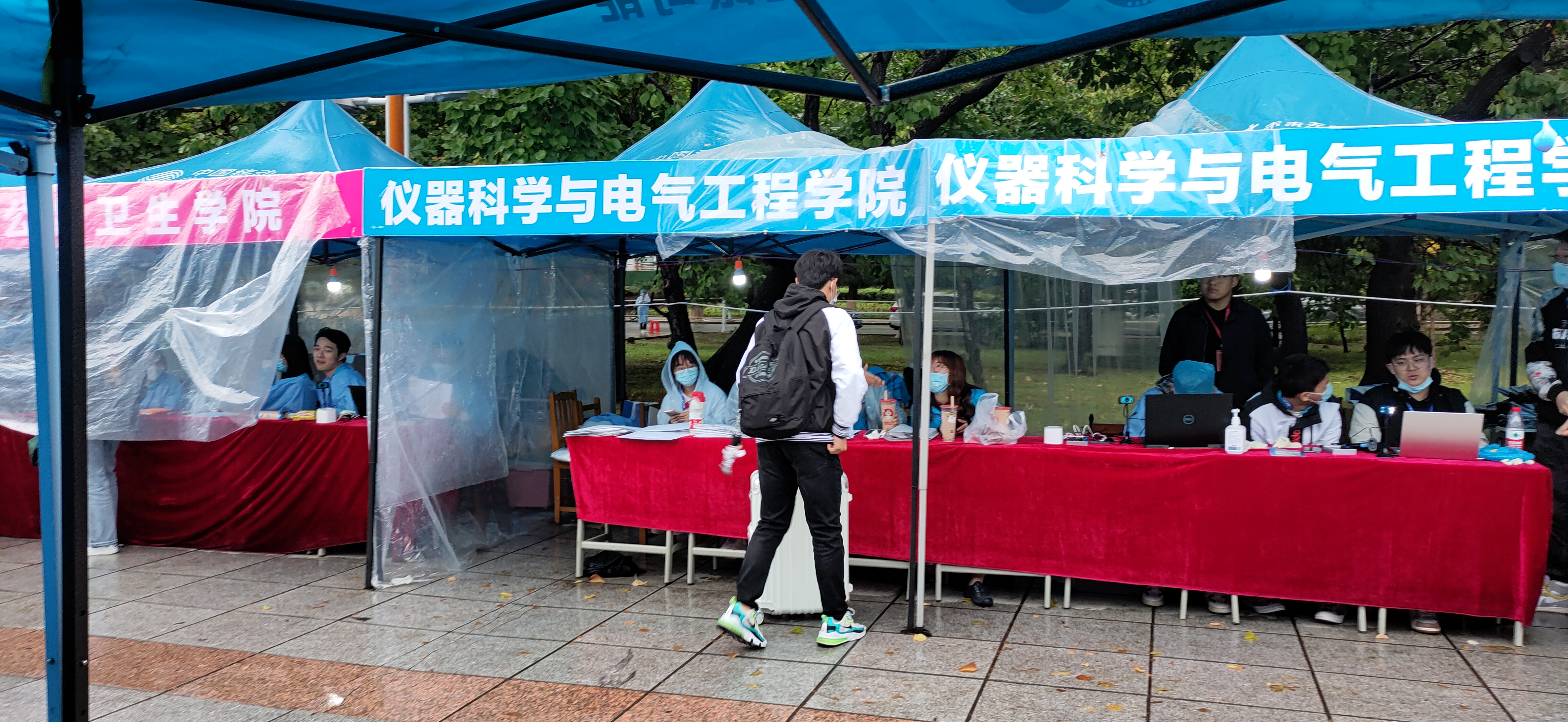 迎新志愿者按时到岗开展迎新场地布置工作。一色