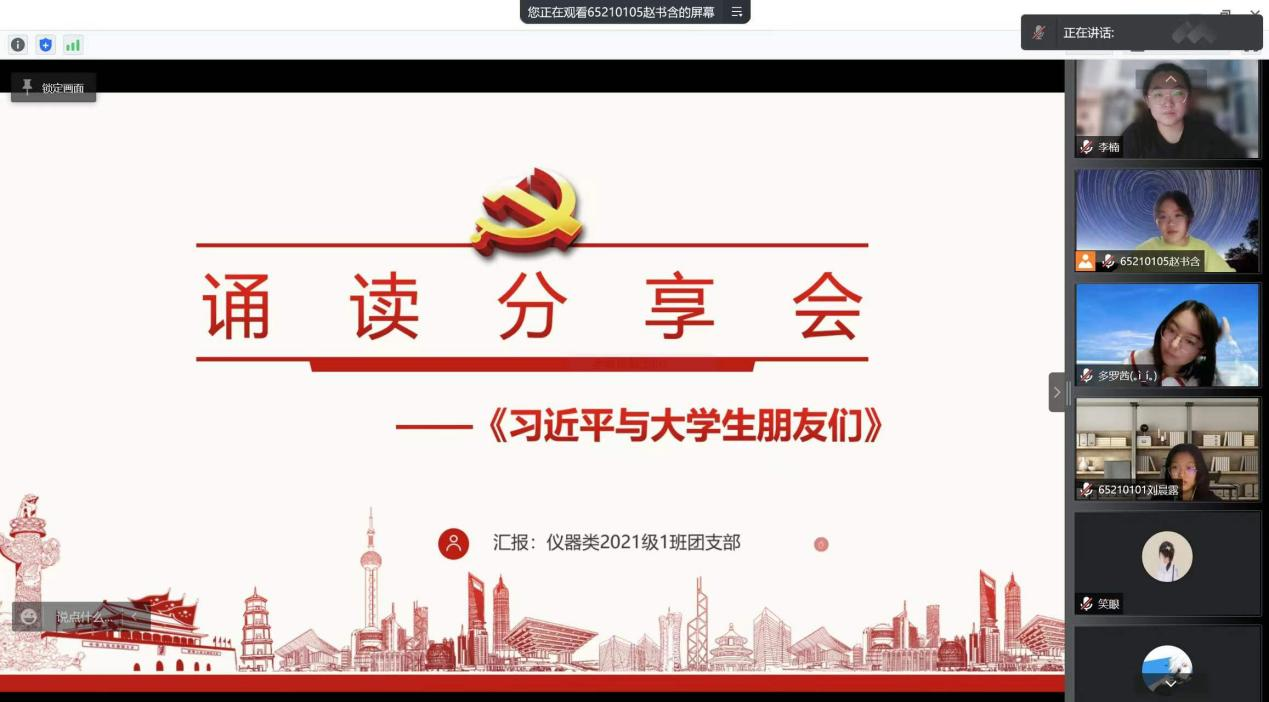 652101团支部于2022年3月26日19:30,线上开展了关于《习近平与大学生朋友们》学习分享的团日活动。分享会由团支部书记赵书含同学主持,团支部全体同学参加了此次诵读分享会。