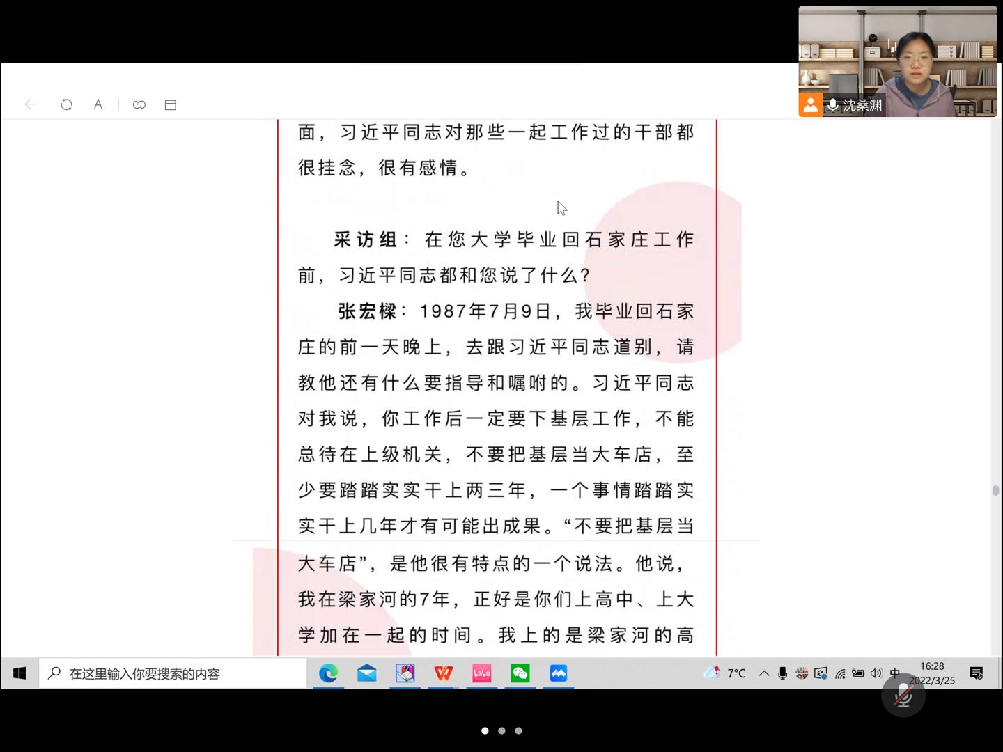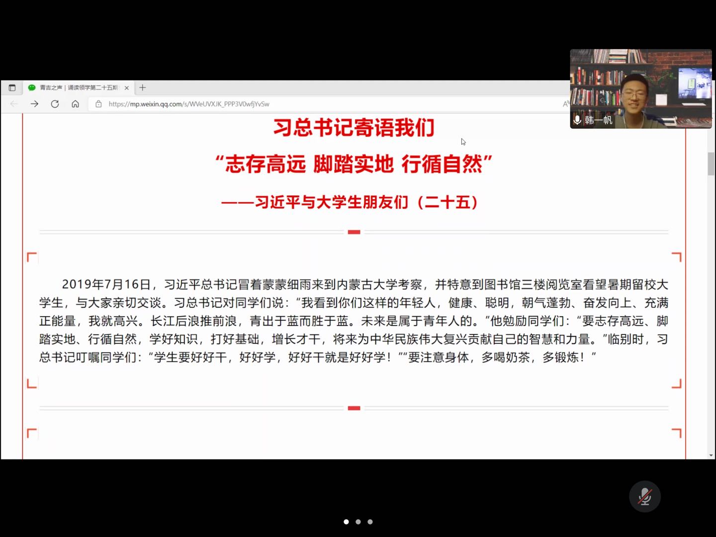 652004团支部于线上开展了精读《习近平与大学生朋友们》主题团日活动,活动由团支部书记沈桑渊同学主持,652004班全体同学出席参加。