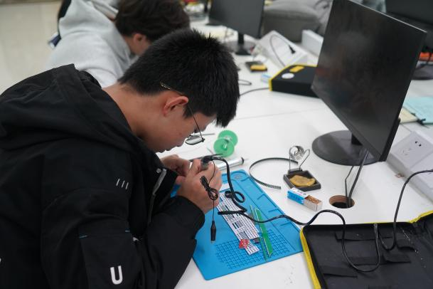首先,主讲人徐春雨讲解实验室安全知识和焊接技巧,以及有关电子元器件的基本知识和原理。之后,进入实践制作环节,同学们手动焊接电路板,对其进行测试,对电路进行修改,科协成员协助展开活动,并对同学们进行指导和问题解答。最后,协会成员对同学们制作好的成品进行检查,观察电路是否能够正常工作以及电路的最终效果,每一位参与活动的同学都收获了自己的地质宫模型。