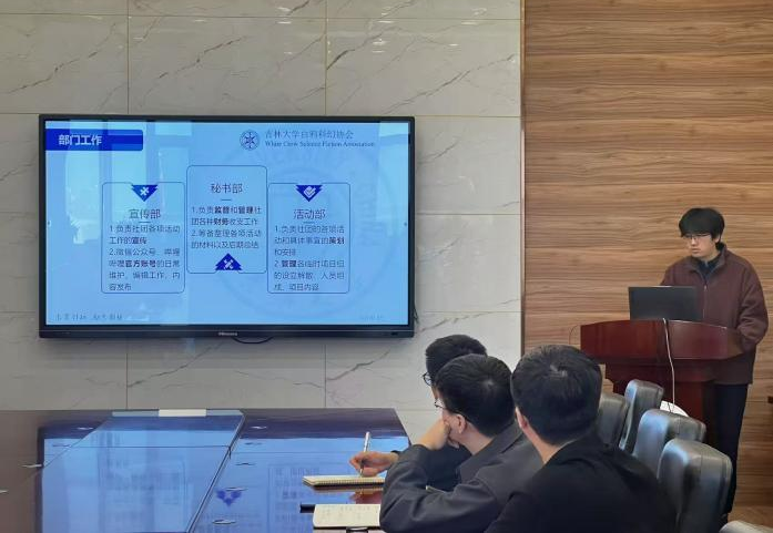 于2025年4月8日在地质宫330会议室召开团学联部门工作例会。学院党委副书记曲珩、团委负责人包健伦,辅导员老师王文轩、学生会主席团及各部门社团负责人参会,针对团委,学生会,社团组织的工作内容,商讨整改举措,明确改革方向。