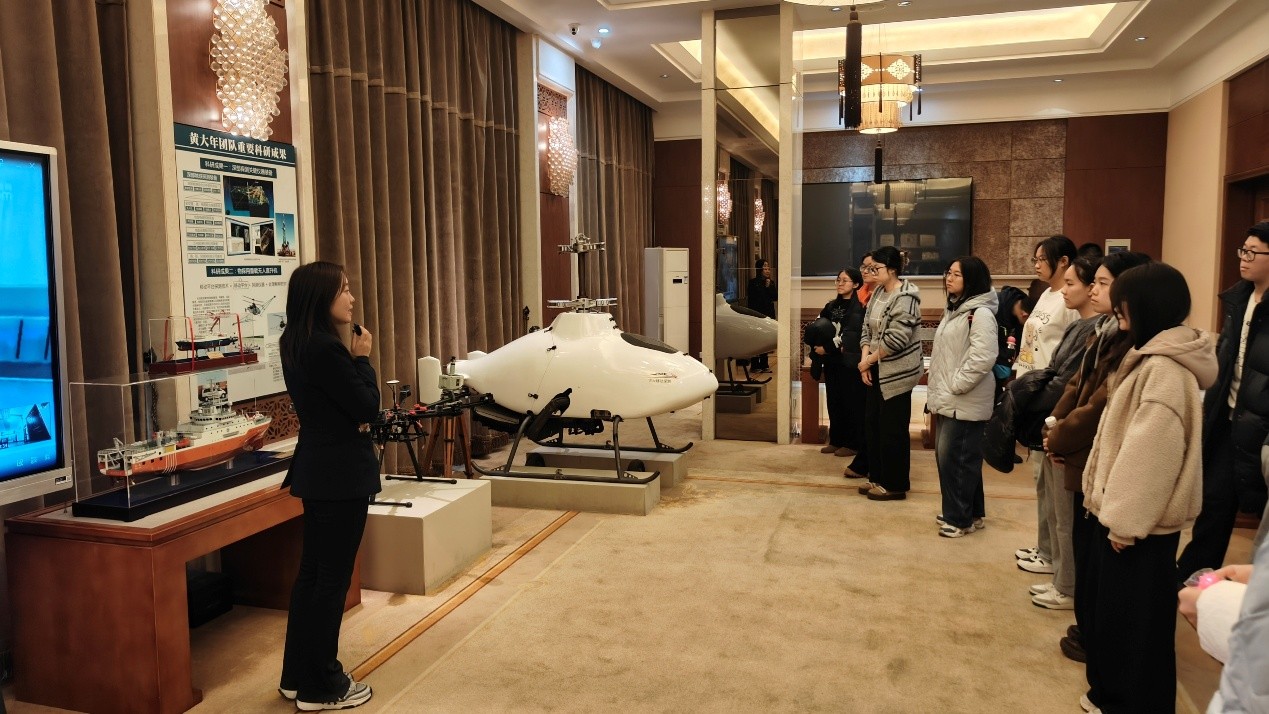 当日下午,学生党员们怀着敬仰之情步入地质宫。在纪念馆讲解员的细致讲解下,同学们依次参观了黄大年先生生前辛勤耕耘的507办公室、记录其科研成就的成果陈列区以及他倡导学术交流的“茶思屋”。办公室内,摊开的笔记、泛黄的纸页与密集的日程安排,无声地展示着黄大年先生当年夜以继日的科研攻坚的日子;陈列柜中,先生使用过的旧物及其主导研发的一系列地球物理勘探仪器模型,清晰勾勒出我国深部探测技术从奋力追赶到与国际先进水平并驾齐驱的不凡轨迹。一幕幕复原场景,一件件珍贵实物,使学生党员们深受触动,真切体会到黄大年先生“振兴中华,乃我辈之责”的深沉家国情怀与使命担当。