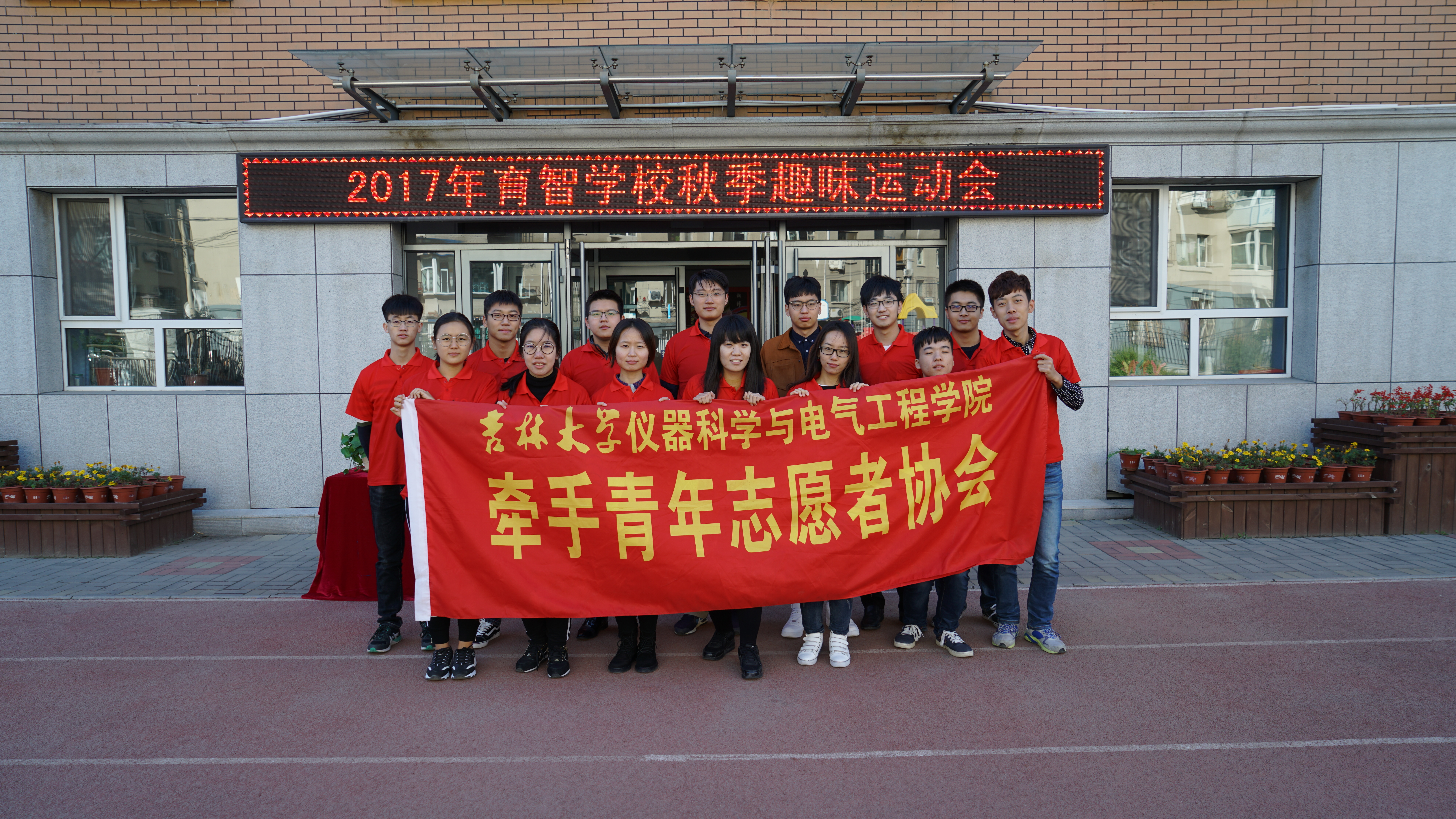 “牵手”青年志愿者协会组织院学生干部,前往育智学校为自闭症儿童组织趣味运动会。