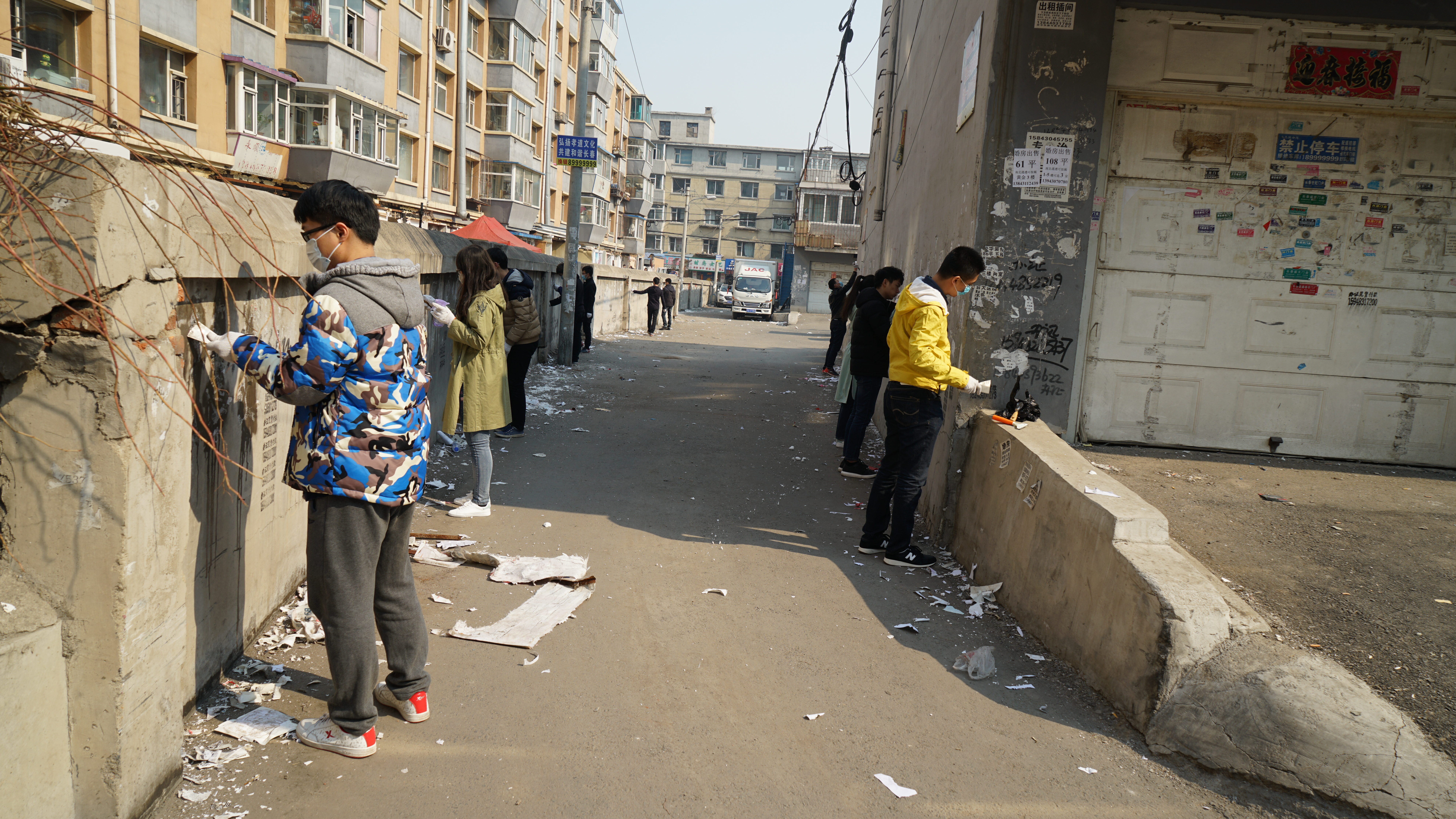 活动前一天,协会召开活动会议,根据社区平面图对每一名党员志愿者进行详细地点任务安排,主要针对社区开放式的墙面、公共设施等乱张贴小广告进行清理。活动上午9点,志愿者们在西朝阳社区办事处集合。集合完毕后各自根据任务安排分工行动。活动中每个人积极参与,严肃对待。在清理现场,党员志愿者们不怕脏不怕累,拿着小铲、水桶等工具,对背街背巷、公共设施的小广告进行了彻底清理,还有些粘贴牢固不易清理的小广告,将其用手一点一点将其撕离墙体。社区庭院地面上满地垃圾,志愿者们在清理小广告后进行了清扫工作,最终整个社区焕然一新。