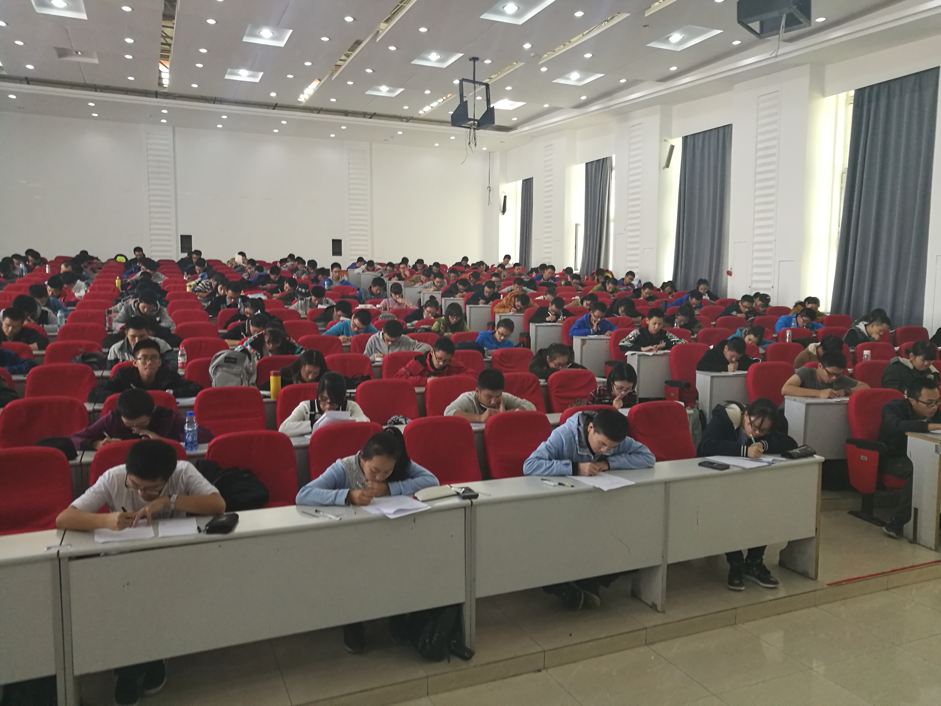 2016级全体学生在前卫南区经信教学楼f5阶梯教室举行了第一次半月考,一色