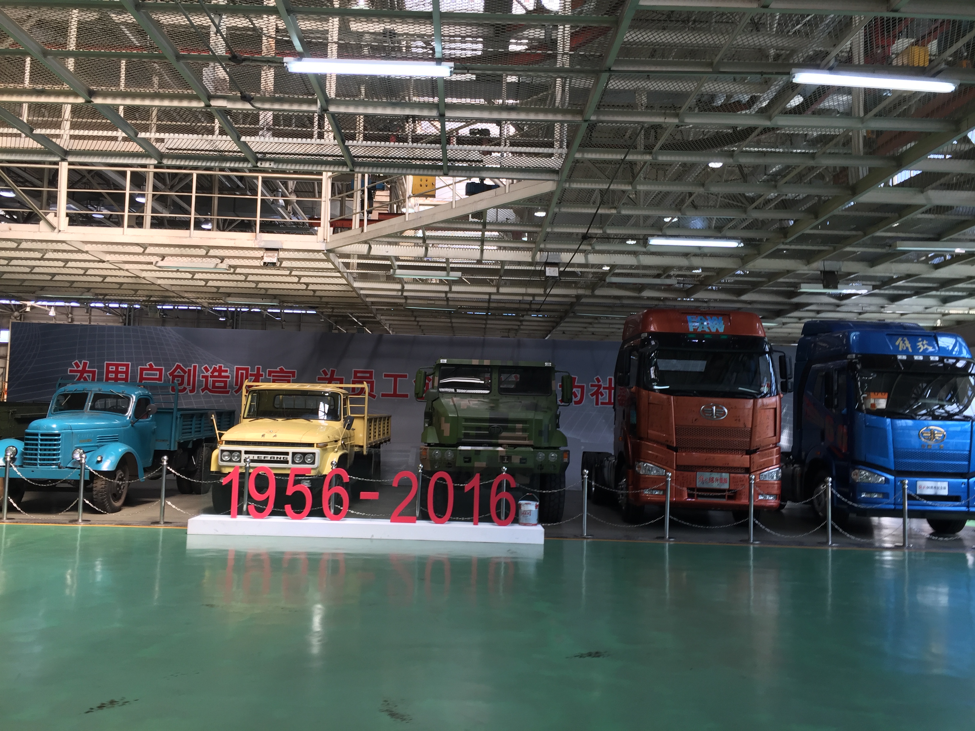 同学们就早早的在地质宫楼下集合,虽然起了个大早,但是同学们依旧神采奕奕,大家表示对此次一汽解放汽车有限公司的参观充满期待。集合完毕后,同学们乘坐校车向一汽解放公司出发。路途遥远,途中带队老师向同学们简单的介绍了此次参观的内容,并提醒大家要重点参观学习与专业有关的部分。经过40分钟的路程,同学们抵达一汽解放公司制造厂,在相关人员的带领下前往解放制造工厂。一汽的主干道上运货车辆络绎不绝,司机师傅们高速地进行作业,在保证高效的同时又显示出严格的秩序,保证高效安全无事故。来到一汽解放总装车间,同学们来到参观专用通道,从上方观察解放汽车的总装过程,这包括了20余个车间,裸车放置在传送带上,直线流水作业,每一道工序有若干人负责,并配有机械手等辅助工具,较高的现代化程度使得整个装配过程效率非常高。
