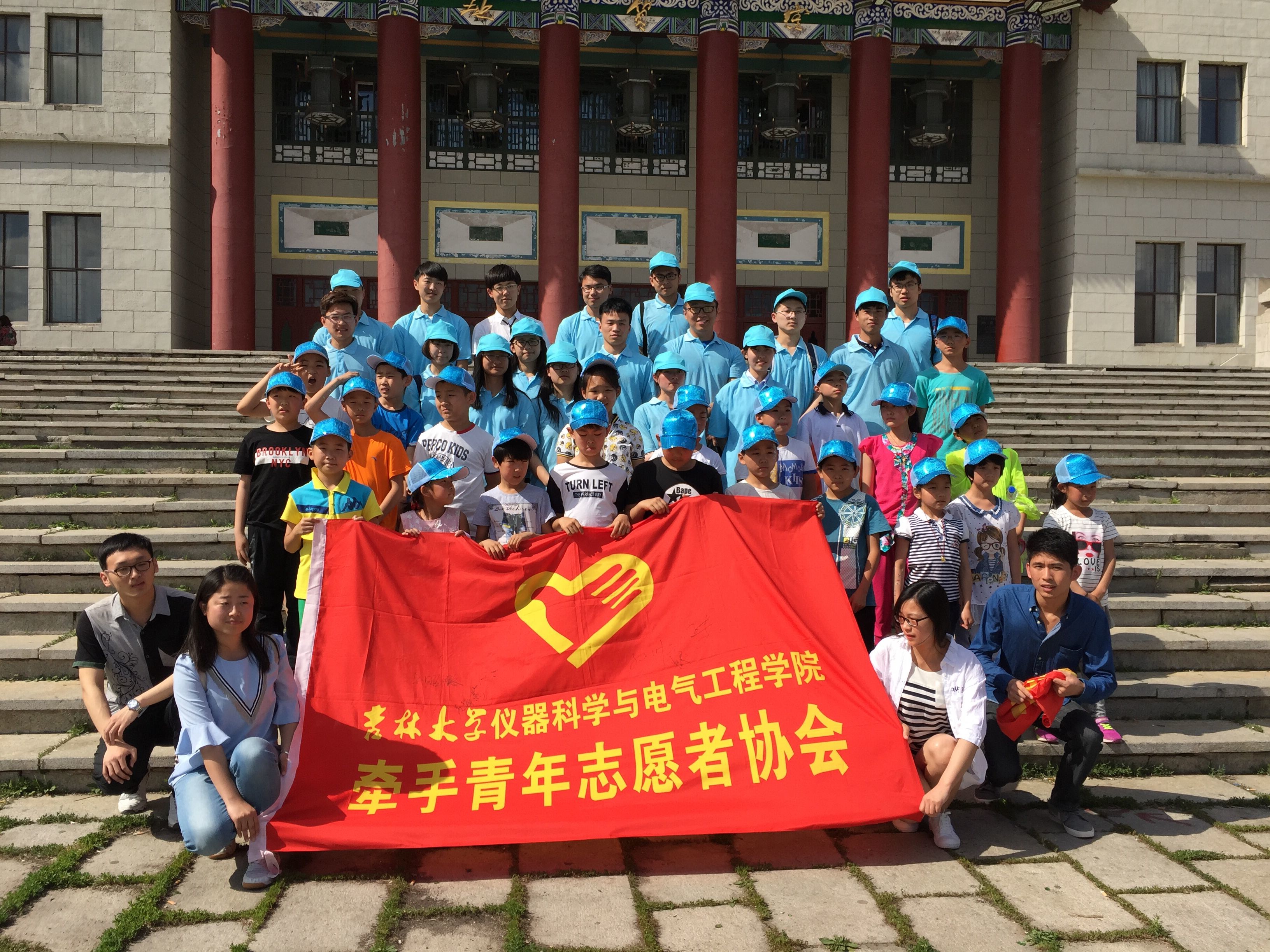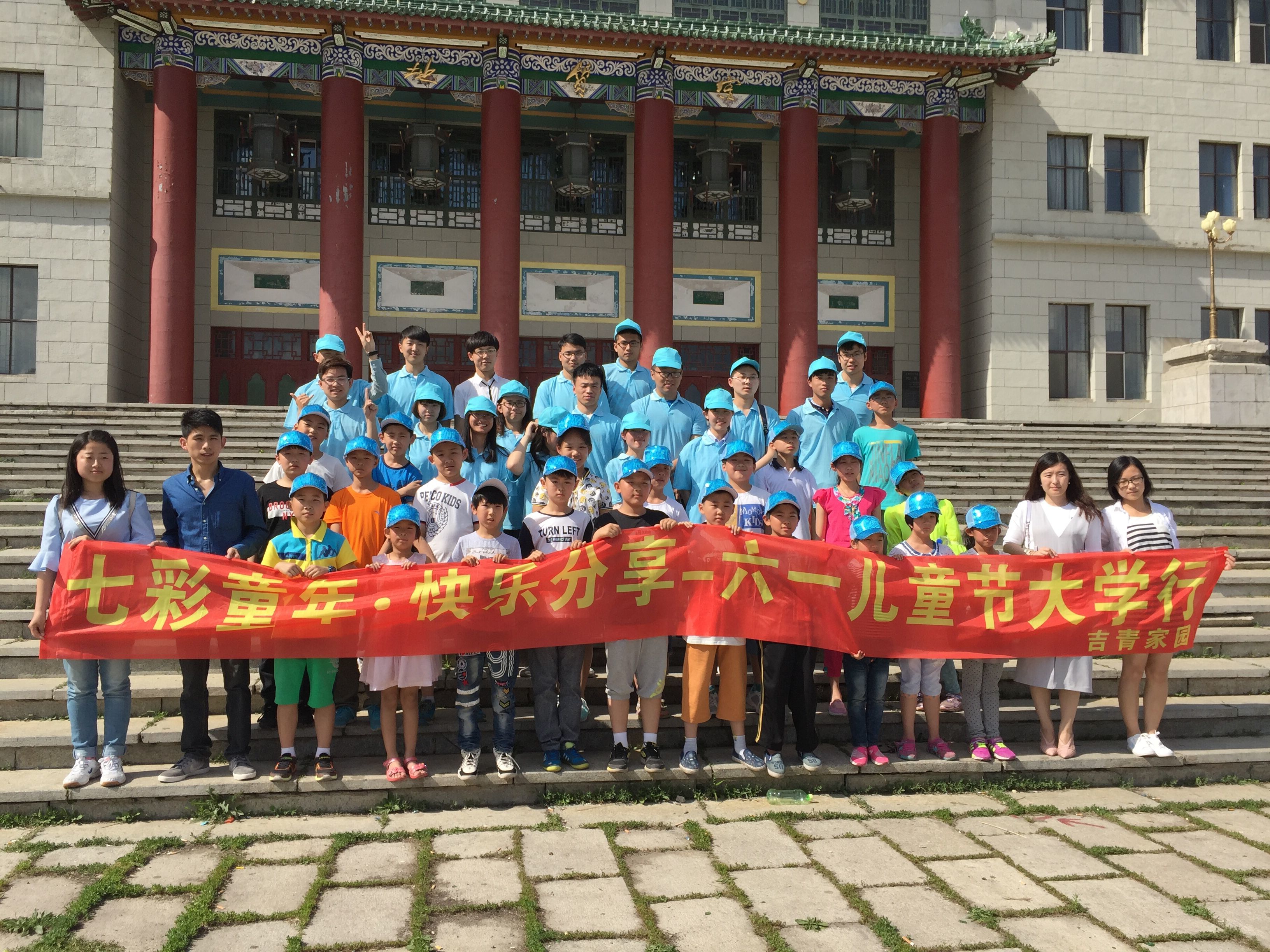 朝阳校区举办,当天下午来自清和街道的20名外出务工农民工子女在志愿者们的带领下在文化广场地质宫门前开展了“七彩童年 快乐分享”儿童节大学行素质拓展活动。