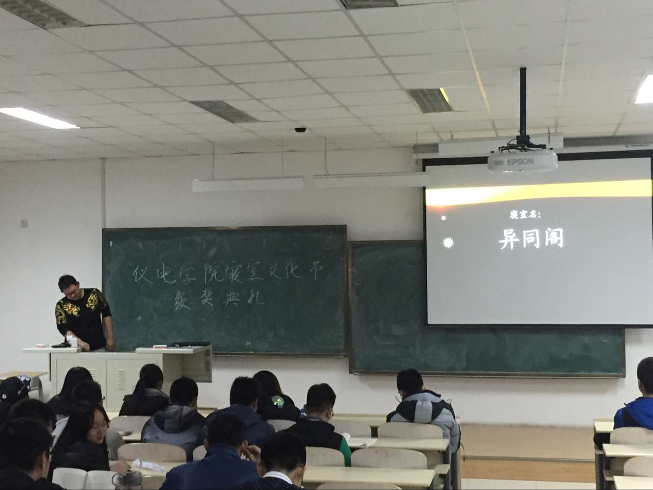 在活动中,大家都能积极参与,认真布置。通过给宿舍拟一个富有文明、健康、向上、和谐、温馨的名字,幽默、睿智的口号、张贴励志标语等等方式设计自己温馨的小窝。有的追求自然,有的个性张扬,令人应接不暇,过目不忘。在大家的积极配合之下,寝室文化节完美落幕,并进行了颁奖仪式。大家为自己的寝室做了独一无二的宣传。主持人向现场的嘉宾们依次宣布了一等奖、二等奖、三等奖的获得者,由生活部部长、副部长为获奖的寝室颁发奖状,并合影留念。在热烈的掌声中,获奖寝室的代表接过奖状,在相机前共同留下满意的笑脸,房钰部长表示参赛的寝室都各有特色,希望能继续保持。在活动当场,进行了当众选举,选出三名代表作为一色