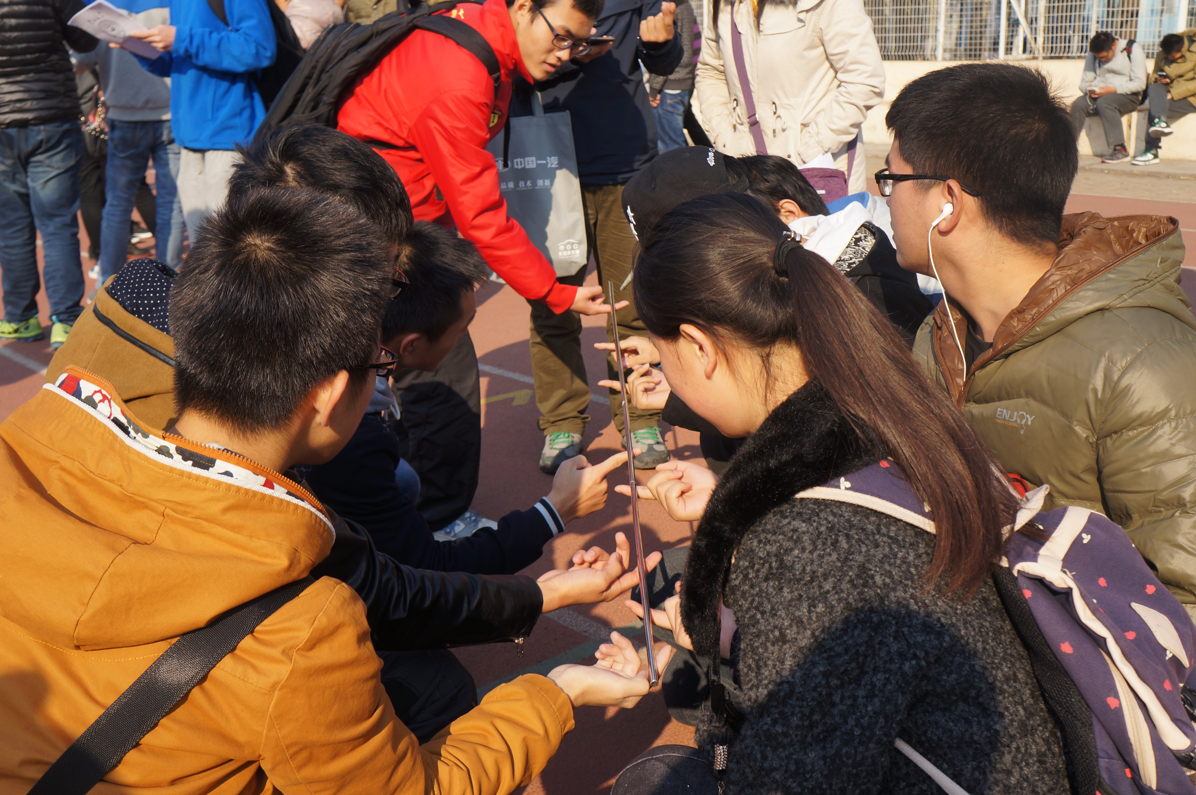 全体人员于中心校区莘子园门口集合完毕后,大一优秀班级干部王宇航作为此次参观的带领人,带领着大家来到体育场。活动组织人员将两院学生共分六组,进行第一项游戏“齐眉棍”:由每组一支钢棍,全体成员站在钢棍的两侧,伸出一支手指,扣住钢棍,使钢棍保持平衡并与额头齐平,然后缓慢下降,将直棍放在地上。精彩有趣的比赛后,获胜的组每人得到了一颗棒棒糖作为奖励。之后,两院学生参观了小清湖,李四光楼,校友纪念林,经信教学楼等校园风景,南岭校区的同学纷纷表示,这次活动生动有趣而有意义,让他们充分领略了一色