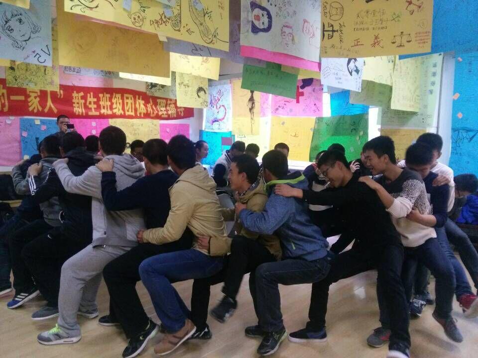 首先,学生会心理部成员为同学们讲解了一些心理知识,解答了一些在生活中常见的心理问题,随后全体651507班同学在心理委员的带领下参加了“温柔体操”、“集体登陆”和“人体字母”等活动,同学们激情昂扬,场面热闹非凡。美好的时间总是短暂,就在大家还沉浸于欢快充实的寓教于乐中时,一曲《相亲相爱一家人》拉上了此次活动的帷幕。