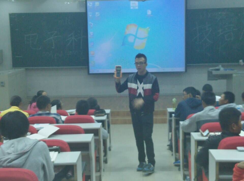 本期培训由科协会长穆怀志担任主讲,经过简单的自我介绍,他向在场的大一新生介绍了几种常用的电子器件,并将携带的器件发与台下观众,与台下的观众亲密互动。之后,主讲人给观众详细地介绍了万用表的使用方法以及各个端口的使用技巧。最后,在预留本期培训的额外任务后,科协会长向在场的大一成员展示了上一届科协成员的优秀作品,并鼓励他们认真参与培训、提高实践能力。整场培训气氛欢快热烈,参训新生热情高昂!