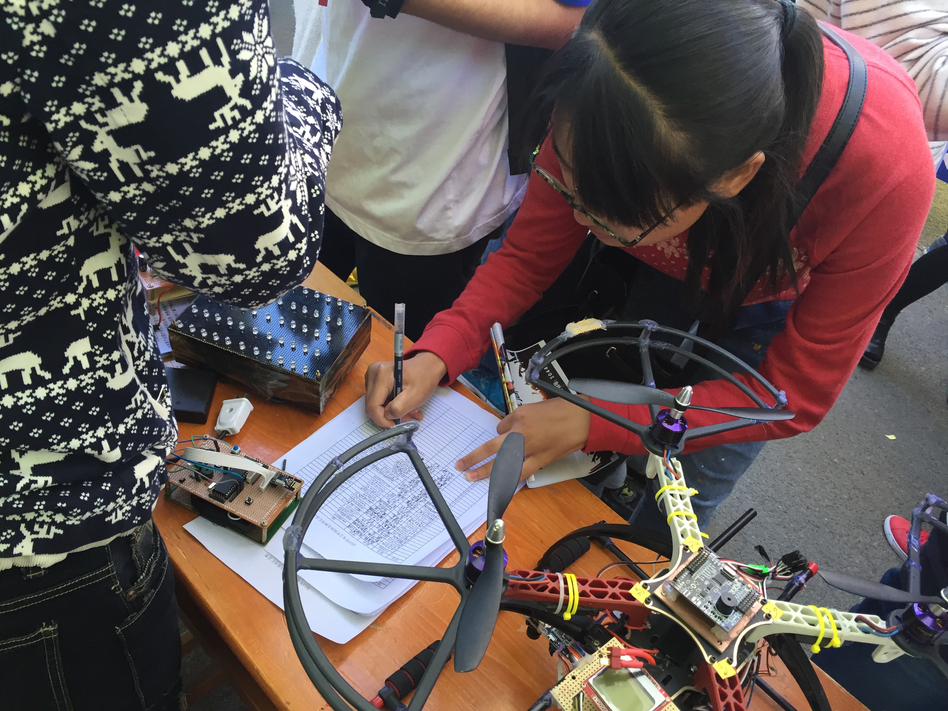 这次纳新活动申报的同学主要以2015级新生为主。2014级成员积极宣传社团特色活动,吸引大一新生争先恐后前来报名,现场报名同学认真看着桌上陈列的四旋翼飞行器等电子创新产品,表现出对电子浓厚的兴趣,并不断询问负责人社团相关问题,希望能够通过介绍了解到更多社团活动,同时也希望通过参加社团举办的系列活动提升个人专业能力。负责人耐心地向他们介绍社团开展的各种形式多样、富有创新的活动。为活跃现场气氛,技术人员现场展示相关电子产品的使用和调试,并播放了个人在制作过程中录制的视频,展示了社团独具个性的一面,引得报名同学驻足观看,纷纷投来赞许的目光。介绍人强调社团宗旨是一切为了会员,让会员在社团中既能够享受权利,又能履行义务,真正成为社团的主角。该社团正以奋发的姿态、舒展的个性迎接新一轮挑战!