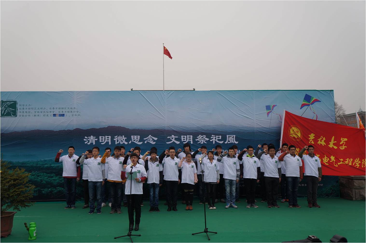 一个清明,一片思念,一座城市,一种文明——2015年3月28日上午,以“清明微思念,文明祭祀风”为主题的长春市2015年清明节社会公祭系列活动在文化广场拉开帷幕,本次活动由长春市朝阳区文明办、长春市朝阳区民政局、吉林省民俗学会、长春市殡葬协会、吉视公共新闻频道《第1播报》、吉和网共同联办,一色