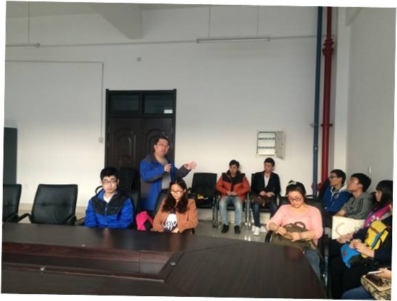会上,651304班班长于一兵首先向老师汇报了班级上学期的学习和工作情况,并向老师请教了关于学校大学生创新项目的相关问题,王世隆老师细心的为同学们讲解了大创的相关操作程序并结合自己多年带领学生开展大学生创新项目的经验给同学们作了很多思路和方法上的指导,同时又举出了很多相关的例子引导同学们积极思考,勇于创新。随后,有同学提出考研保研的相关问题,王世隆老师向大家详细介绍并讲解了免试推荐研究生条件要求,强调了免试推荐研究生的硬性条件和各项规定,并督促同学们要重点加强专业课程的学习,合理规划以后的学习生活。接着,又有同学提出了关于调研报告和即将到来的校电子设计大赛的问题以及学习某些课程中遇到的困难,针对这些问题,老师一一作了细致的回答,同学们认真聆听,积极思考。最后大家一起合影留念,座谈会在轻松愉快的氛围中圆满结束。