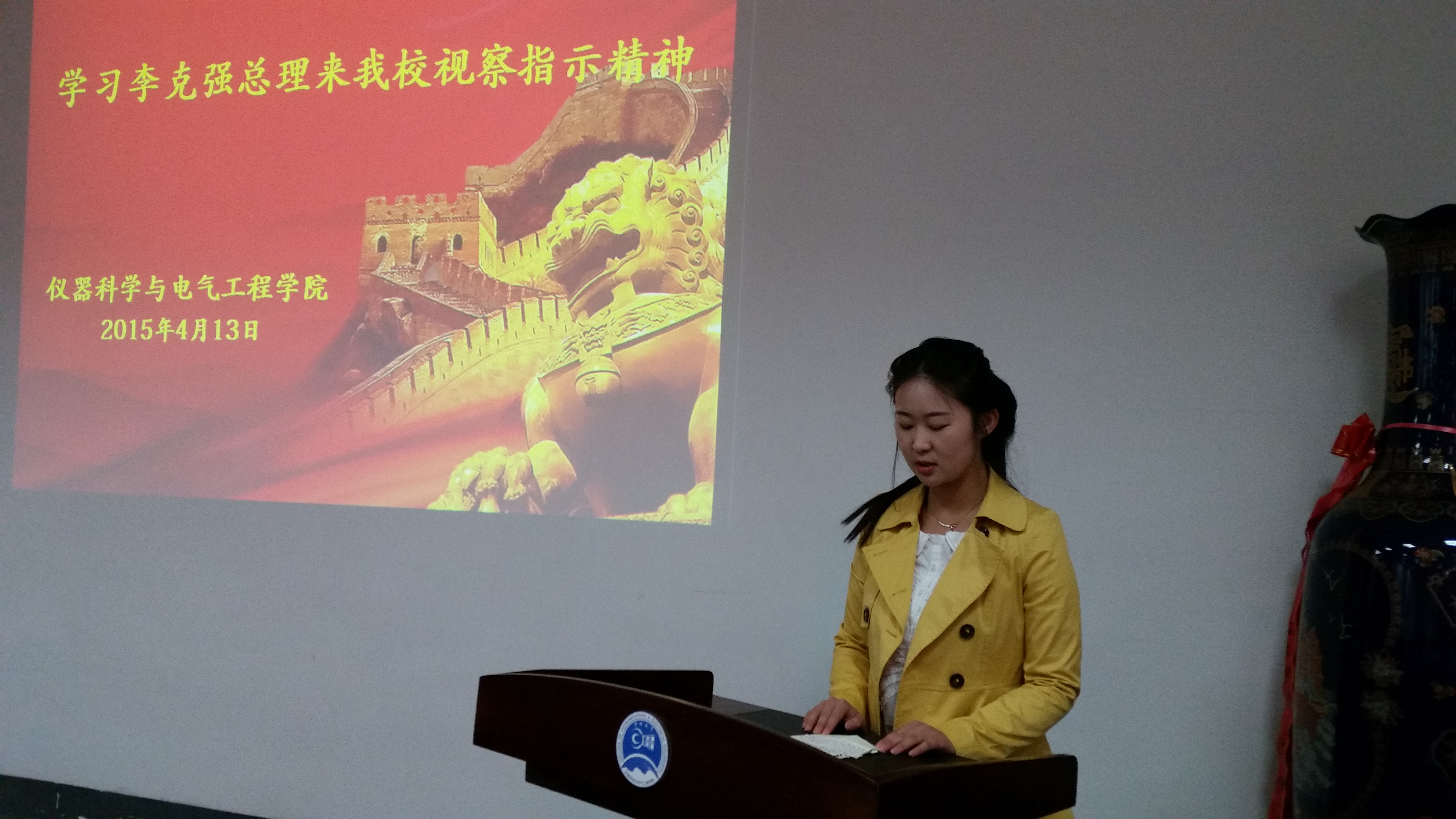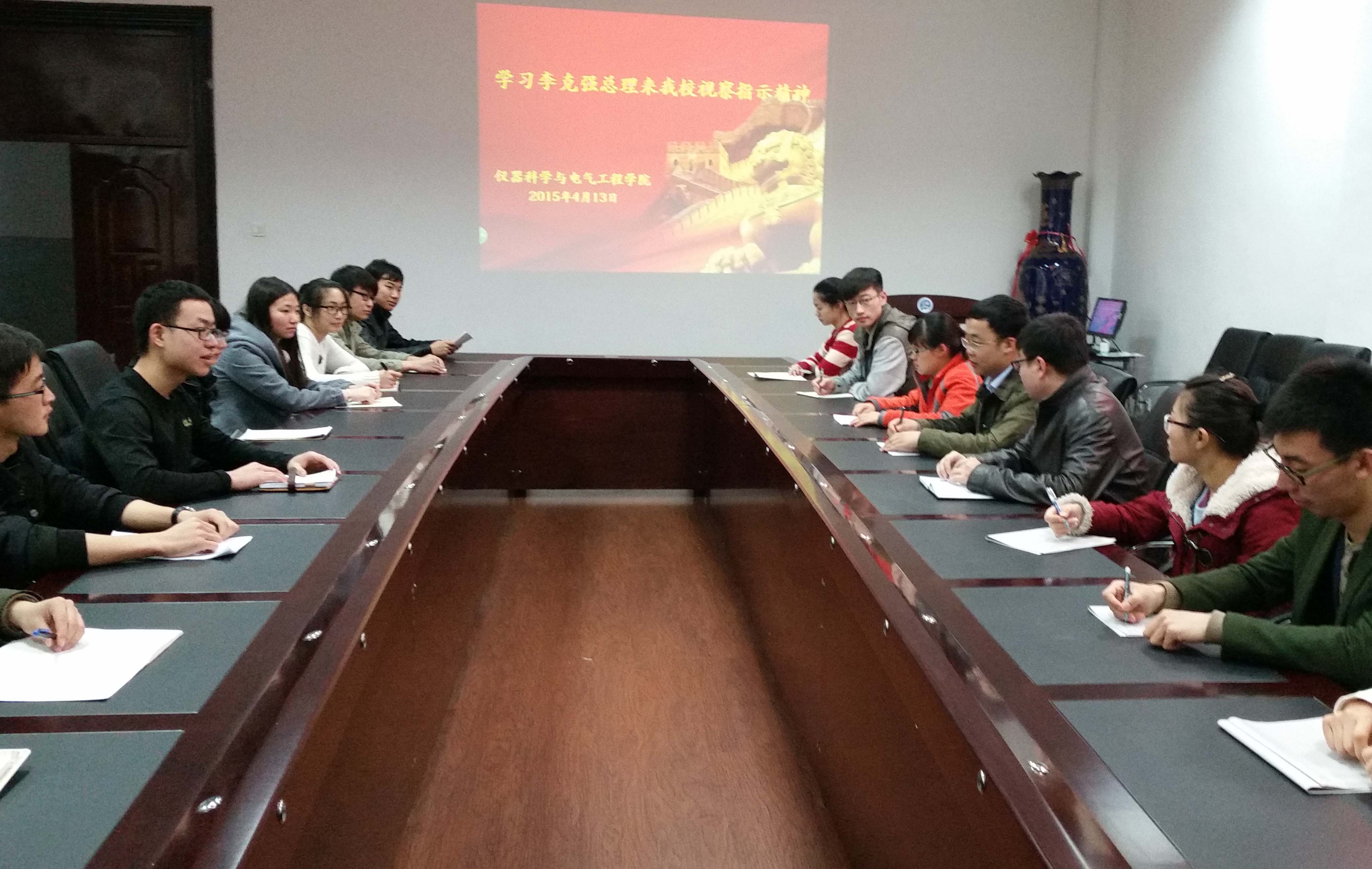 团委于2015年4月13日9:00在朝阳校区地质宫330室组织召开了“学习总理来我校视察指示精神报告会”。一色