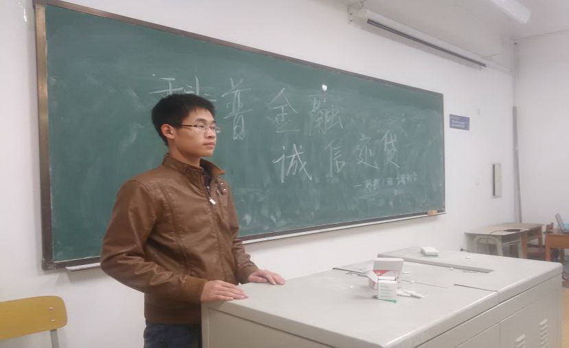 2014级二班于中心校区李四光楼302教室举行“诚信立身金不换”主题班会。