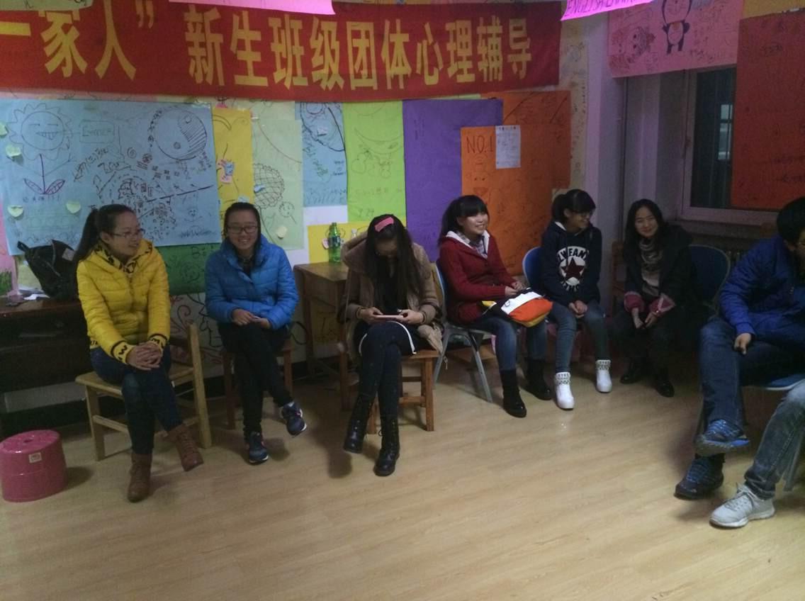2014级六班于12月13日在中心校区李四光楼302教室举行了“我们是相亲相爱的一家人”主题班会活动,学院学生会心理部成员和全班同学参加了此次班会。