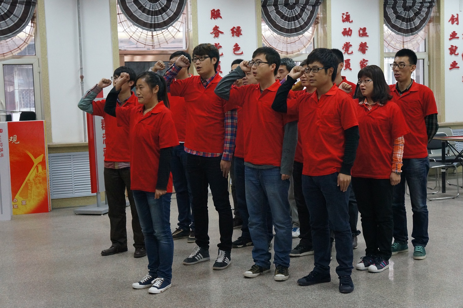 本科生党支部组织开展了 “风雨同舟二十载 志愿服务谱新篇”服务型党支部创建活动。2014年12月2日上午,党支部全体学生党员在院团委书记兼本科生党支部书记朱宇、本科生党支部副书记张昊宇的带领下来到清和街道铁路社区党建活动室开展了纪念“一二•九”学生爱国运动79周年暨入党宣誓仪式。