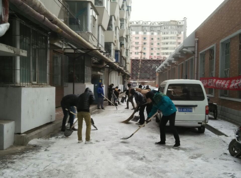 大学生党员在本科生党支部副书记张昊宇及学院主要学生干部的带领下携带扫雪工具来到南昌社区进行了扫雪活动。由于此次降雪持续时间长,导致路面积雪较多较厚,为大家的扫雪工作带来了许多困难。但是全体学生党员们分工明确、团结协作,发扬雷锋精神,不怕苦、不怕累,铲雪、扫雪、装雪、运雪,大家认真细致地完成每个环节。虽然天气寒冷,许多同学的脸和手都冻红冻僵了,但是大家热情似火、干劲十足,路面积雪很快就被大家清扫干净。看着社区道路慢慢恢复了原先的整洁与通畅,学生党员们的脸上也露出了开心和满足的笑容。