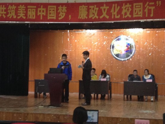 委员会举办的“同心共话改革路,廉政文化校园行”党史校情知识竞赛初赛于2014年4月12、13日中心校区在田家炳A座小礼堂举行。一色