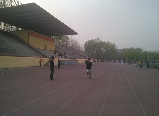 学生男子8×100米接力赛队员在院学生会负责人的组织下开展赛前训练工作。