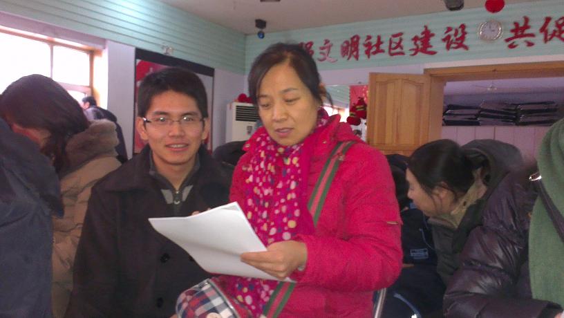 团委在接到调研任务后,高度重视、精心组织、周密安排,在校团委的具体指导下,认真按照上级要求,组织专人设计调查问卷内容,最终形成了针对初中毕业班学生、初中毕业班教师、初中毕业班学生家长、初中校长和社会各界人士的调查问卷共计5类,印制调查问卷数百份。按照调研进度安排,学院2014年寒假社会实践调查团主要成员于1月17日下午在院团委书记朱宇的带领下分别前往朝阳区清和街道南昌社区、万宝社区、普庆社区等地开展专题调研活动。在各社区活动室,实践团成员在社区党支部书记的协助下分别对初中毕业班学生、初中毕业班学生家长和社区居民开展了问卷调查。实践团成员热情耐心地向被调查人员说明调查目的,协助他们认真完成调查问卷相关内容。经过三个多小时的辛勤工作,社会实践调查团圆满完成了调研任务。